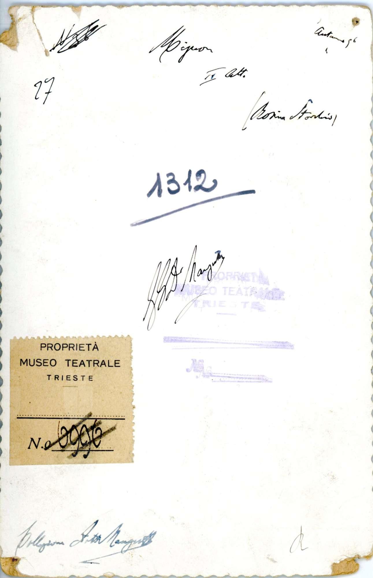 In costume di scena, nel ruolo di Mignon nell'opera omonima. A Trieste ha cantato al teatro Verdi nel 1899 in"Andrea Chenier", "Boheme", "Saffo"e "La resurrezione di Lazzaro"; nel 1914 in"Don Pasquale"e "Traviata"; nel 1920 in "Lodoletta"; al Politeama Rossetti nel 1900 in "Mignon"; al teatro Fenice nel 1894 in "I pagliacci" e nel 1896 in "Mignon" e "La pupilla"