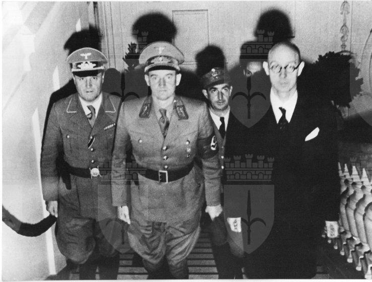Nella foto si distinguono Friedrich Rainer, il prefetto della Provincia di Trieste Bruno Coceani e il Deutscher Berater Hinteregger, funzionario tedescco deputato al controllo di tutti gli atti compiuti dal prefetto.