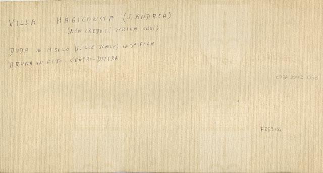 La villa venne costruita su progetto di Ruggero Berlam nel 1889. A commissionarla fu Giorgio Haggiconsta, un ricco possidente di origine greco-russa marito di Elena di Demetrio, proprietaria del fondo. Alla morte dei proprietari, l'edificio fu acquistato da un cittadino italiano che lo cedette al Comune di Trieste. A partire dal settembre 1924 fu sede dell'Istituto femminile di coltura e proponeva corsi liberi rivolti a un pubblico femminile di "lingua e letteratura italiana, francese, tedesca, inglese, storia della cultura e dell'arte, lavori femminili ed artistici, disegno, pittura, pittura, modellatura, incisione, corso pratico di batik, musica, ginnastica svedese ed armonico ritmica, danza classica". La foto ritrae, tra le altre, Fulvia, madre del donatore e la sorella Bruna Stoelker. Negli anni Trenta fu donata all'Opera Nazionale Balilla, affinché la destinasse a "Casa della Giovane Italiana" e, di conseguenza, vennero eseguiti dei lavori di adattamento, in particolare ai fabbricati di servizio. Tra il 1962 e il 1968 la villa venne utilizzata dall'Opera di assistenza ai profughi giuliani e dalmati, mentre nel 1972 la proprietà della struttura passò alla Regione che, dopo i restauri seguiti dall'ingegner Pietro Cvitanich, la destinò ad accogliere un centro di educazione motoria. Il complesso della villa comprendeva in origine, oltre all'edificio padronale, la scuderia, una rimessa, la lavanderia, le serre e un giardino all'inglese, il tutto progettato da Berlam. L'edificio principale, in stile eclettico con rimandi all'architettura italiana del Cinquecento, presenta una pianta ed una composizione dei volumi mosse ed asimmetriche ma equilibrate nell'insieme. Sul lato principale si distinguono tre corpi in altezza decrescente con una torretta che domina il complesso.