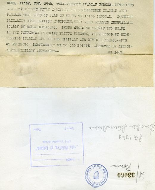 HomeIl principe Umberto II di Savoia presiede la parata del nuovo esercito con i ministri Ivanoe Bonomi, Alessandro Casati, Umberto Tupini, il senatore Carlo Sforza