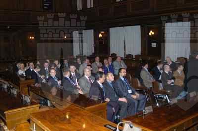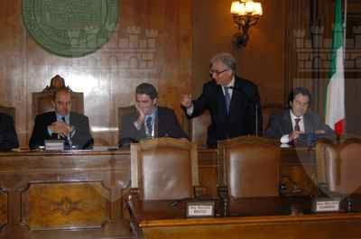 Il sindaco Roberto Dipiazza ed il Presidente del Consiglio comunale Bruno Sulli ed l'assessore comunale Maurizio Bucci con il presidente di Round Table Italia Maurizio Giudici e gli altri rappresentanti presenti al Meeting organizzato dalla Round Table Italiana in collaborazione con il Comune di Trieste, durante l'incontro avvenuto nella sala del Consiglio del Municipio.