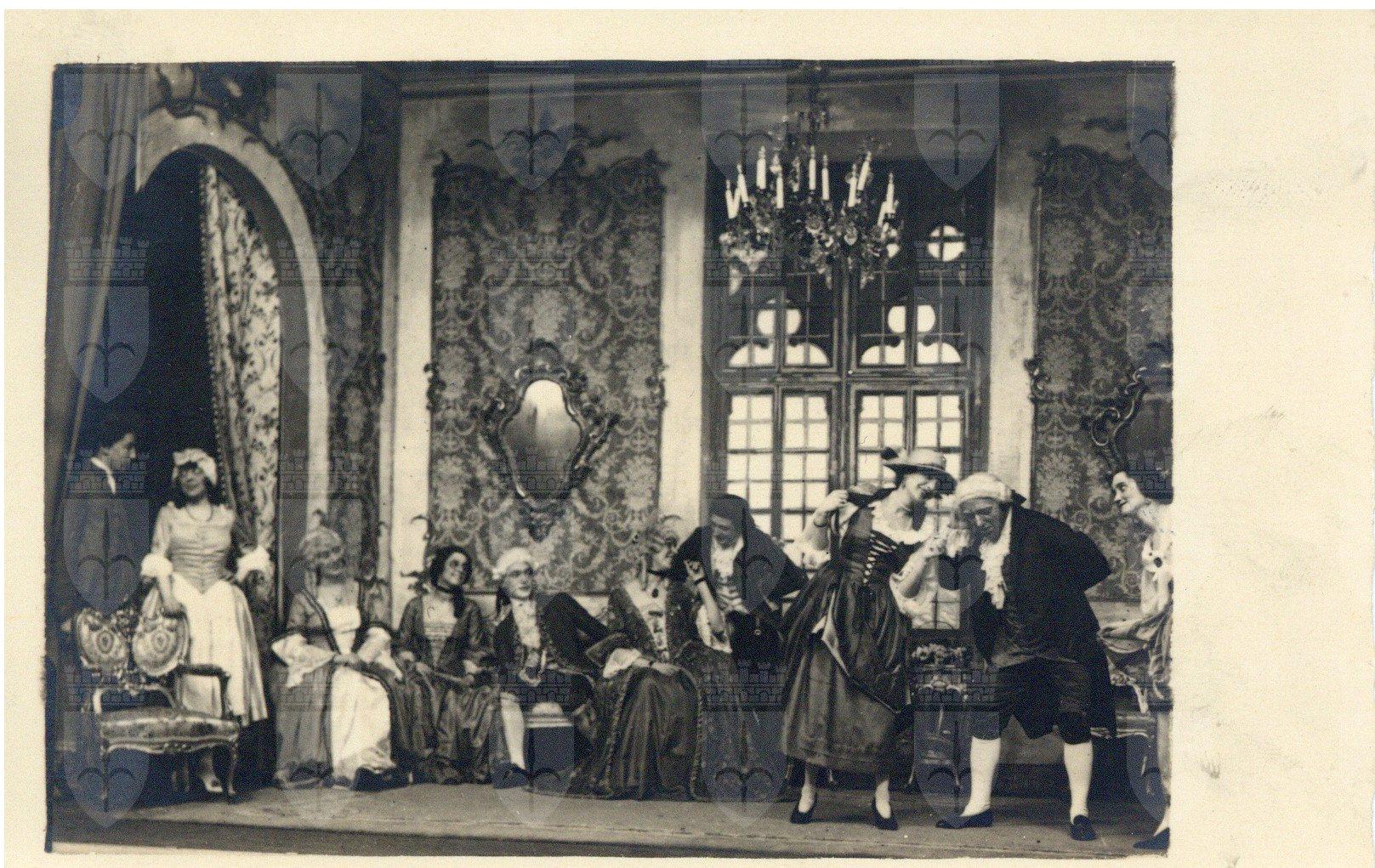 Scene e attori dilettanti della commedia rappresentata dal Circolo Artistico di Trieste dal 4 al 6 aprile 1923, regia di Guido Hermet. Protagonisti: Orazio Sturli, Livia Rimini, Mariuccia Gerussi, Fabio Venezian, Dolores Tarabocchia, Aurelio Zuculin, Bice Randegger Richetti, Nanà Orel-Held, Alberto Riccoboni