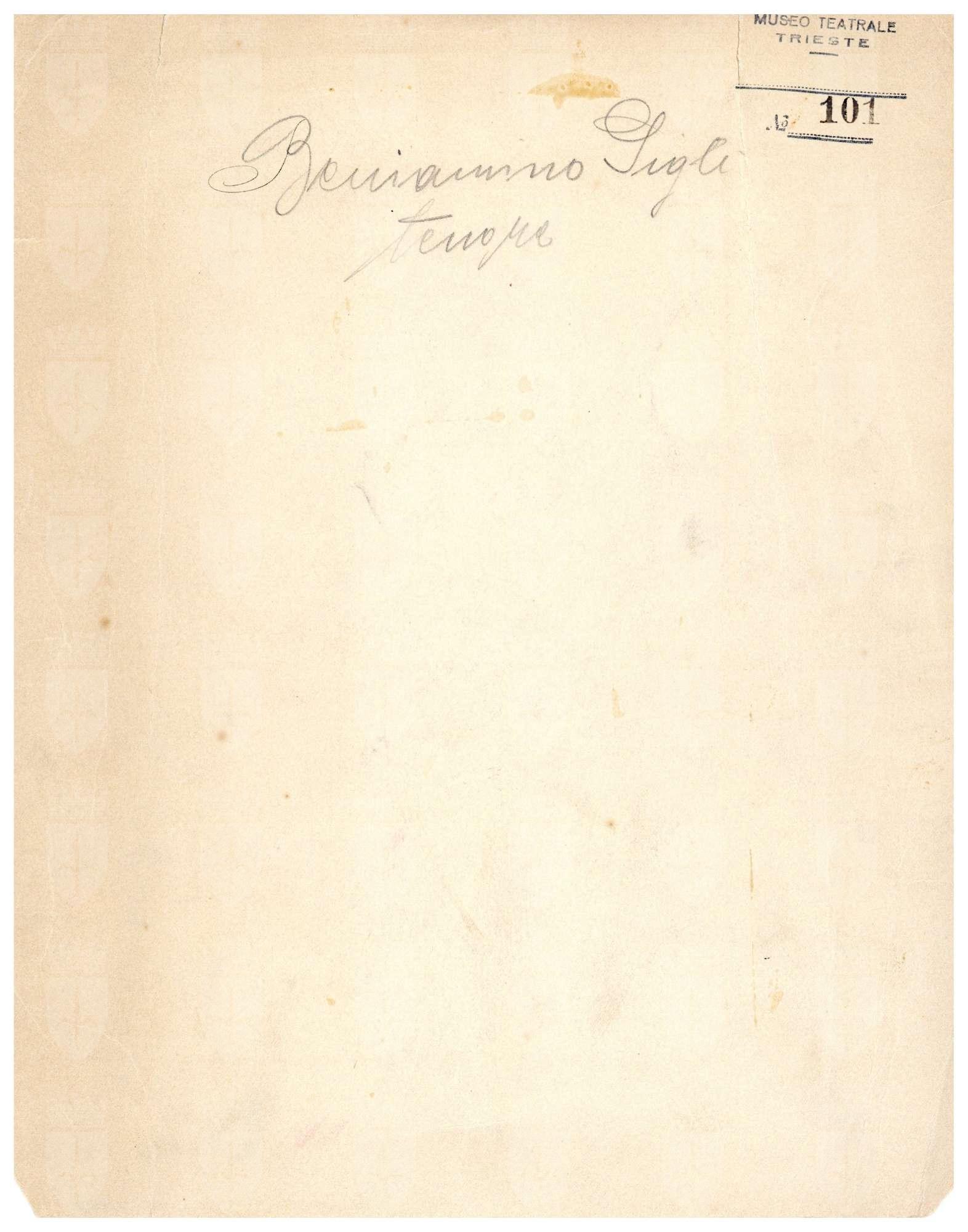 H. Mishkin (1871-1948) nato in Russia è emigrato in America, dove si è specializzato in ritrattistica di artisti lirici; ha lavorato come ritrattista ufficiale del Met dal 1905 al 1932; B.Gigli è qui in costume, a figura intera, mentre interpreta il personaggio del pittore M. Cavaradossi nella "Tosca" di G.Puccini
