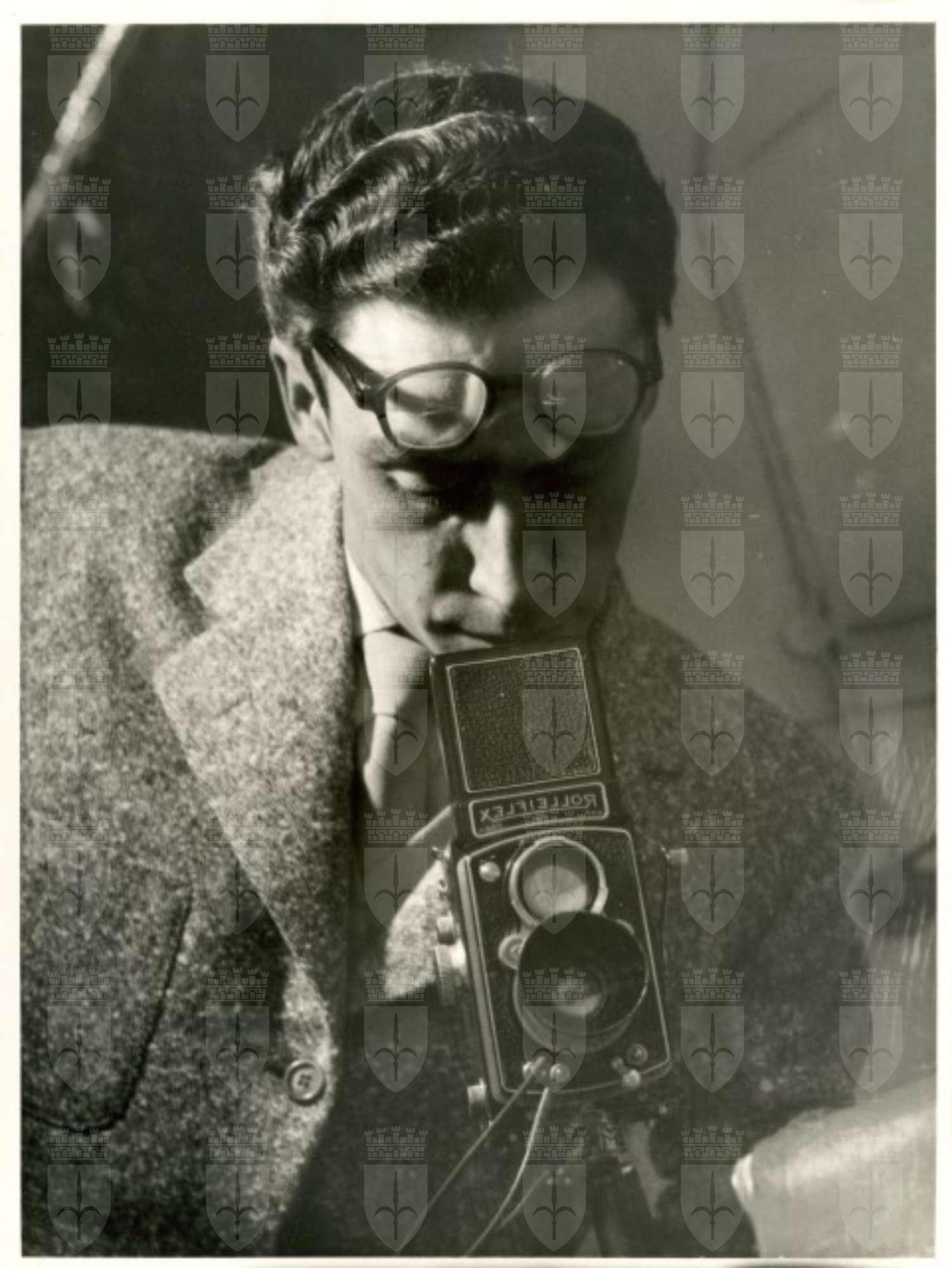 Autoritratto allo specchio del fotografo con la macchina Rolleiflex