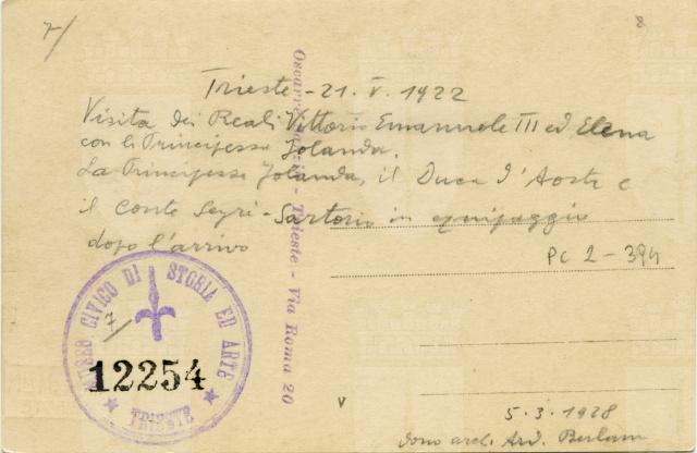 Jolanda - Duca d'Aosta - Conte Segrè : Trieste 21 maggio 1922