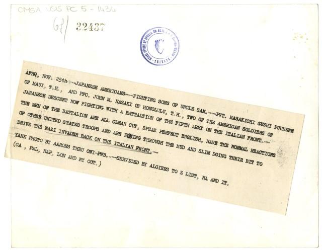 Nell'immagine due soldati di origine giapponese combattono per l'esercito americano sul fronte italiano.