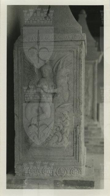 Fianco sinistro dell'ara ossuario di C. Varius Priscus rinvenuta a Jesolo (Venezia) in località Le Mure (fondo G. Rossi) in condizione di reimpiego, conservata presso il Museo Archeologico Nazionale di Aquileia. Il dado reca sulla fronte l'iscrizione funeraria, che recita: C(aius) Variu[s] A(uli) f(ilius) Scap(tia) Priscus, v[et(eranus)] leg(ionis) VIII Aug(ustae), M(arcus) Corn[e]lius M(arci) f(ilius) Vel(ina) [Ru]fus, M(arcus) Corn[e]lius M(arci) l(ibertus) Clarus, [II]IIIIvir, Valeria C(ai) [l(iberta)] Pergamis, C(aius) Variu[s] C(ai) f(ilius) Vel(ina) Priscus, a[nn(orum)] XXII, mil(es)/pc(o)hor(tis) VIII p[r]aet(oriae), stip(endiorum) VI, M(arcus) Corne[l]ius Rufì l(ibertus)/pMans[ue]tus, VIvîr. Il lato sinistro del monumento è ornato da un erote che cavalca un mostro marino con testa di grifo e coda a spirali, che sovrasta le onde del mare. L'opera si caratterizza per uno spiccato gusto decorativo, che si esprime nei dettagli delle ali dell'erote e della coda del mostro. La fattura denuncia un gusto locale nella resa lineare della composizione, priva di forti contrasti chiaroscurali, e sembra potersi collocare cronologicamente nella prima metà del I sec. d.C.