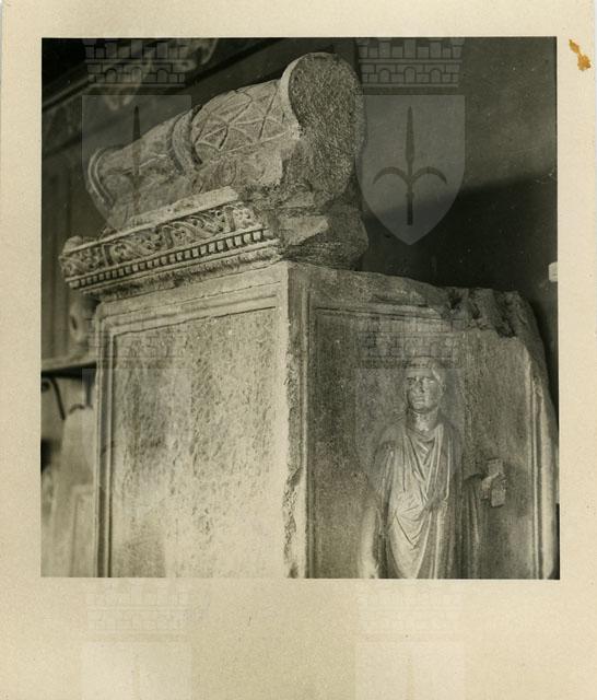 Lato destro dell'ara sepolcrale di Q. Cerrinius Cordus esposta nelle gallerie lapidarie del Museo Archeologico Nazionale di Aquileia. Il rilievo ritrae il defunto idealizzandone i tratti fisionomici e l'atteggiamento. L'uomo è raffigurato stante con un rotolo in mano che lo connota come persona colta. Sul lato opposto, il sinistro, vi è la defunta con un ventaglio in mano. L'ara è opera di una bottega locale attiva nella prima metà del I sec. d.C., con qualche attardamento nella seconda metà del medesimo secolo, vicina al mondo della vera arte per la maestria nella modellazione dei volumi, l'equilibrio dei drappeggi e la vena fresca dell'inventiva.