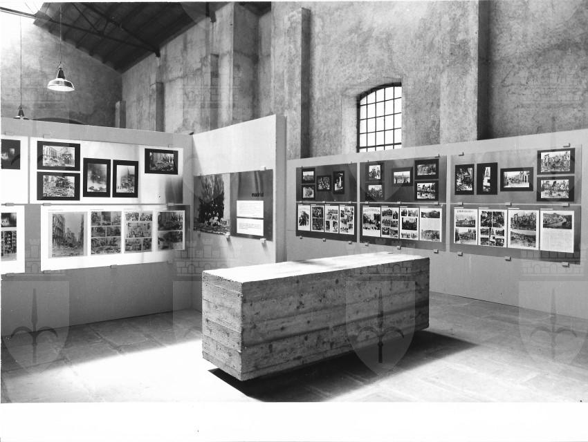 Serie di positivi della presentazione e allestimento "Spagna 1936 -39". La mostra presentata alla biennale di Venezia è stata poi trasferita alla Risiera di San Sabba, fonte: IL PICCOLO 1977/06/14 allegato al cartiglio dattiloscritto con titoli dei positivi.