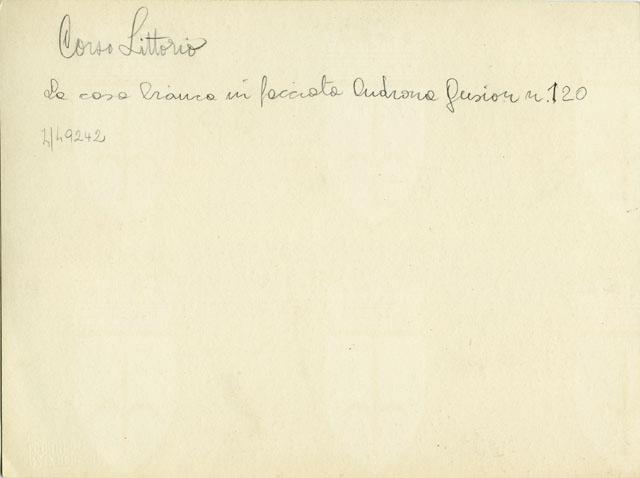 A destra, in primo piano, la facciata della casa di Androna Gusion, al civico 120. Immediatamente a sinistra vi è palazzo Costanzi e all'estremità sinistra il nuovo palazzo del Genio Civile, costruito direttamente dal Genio Civile tra il 1937 e il 1941 successivamente allo sventramento di Cittavecchia.