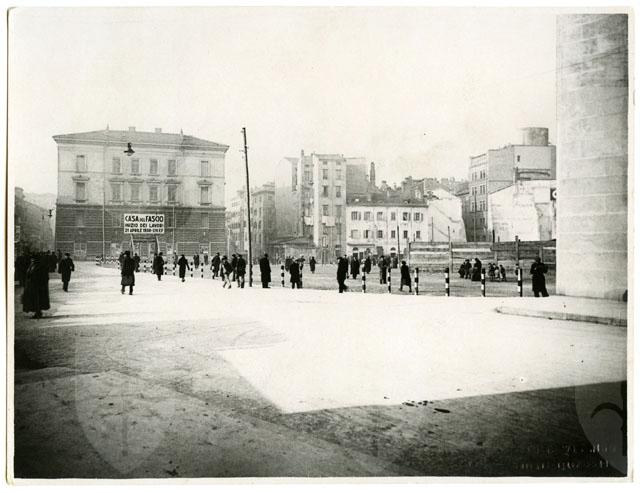 Area su cui verrà edificata la Casa del Fascio, prevista nel Piano Regolatore del 1934 per dare una sede appropriata alla direzione locale del Partito Nazionale Fascista. La costruzione dell'edificio, affacciato su Corso Littorio, rientrava nell'ambito del più ampio progetto di ristrutturazione urbanistica di Cittavecchia, comportante, tra l'altro, la messa in luce delle rovine del teatro romano e la demolizione di parte del ghetto ebraico./pIl concorso per la progettazione dell'edificio, indetto nello stesso 1934, vide vincitori gli architetti Raffaello Battigelli e Ferruccio Spangaro. La prima pietra fu posta da Mussolini durante la sua visita a Trieste il 18 settembre 1938, tuttavia il cantiere terminò solo qualche anno più tardi, nel 1942.