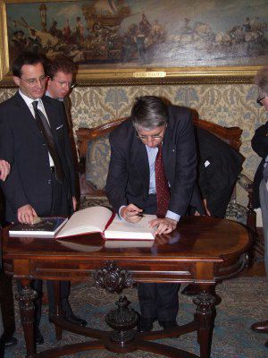 Carlo Giovanardi, ministro per i rapporti con il Parlamento riceve il sigillo trecentesco della Città di Trieste : Trieste : 2002