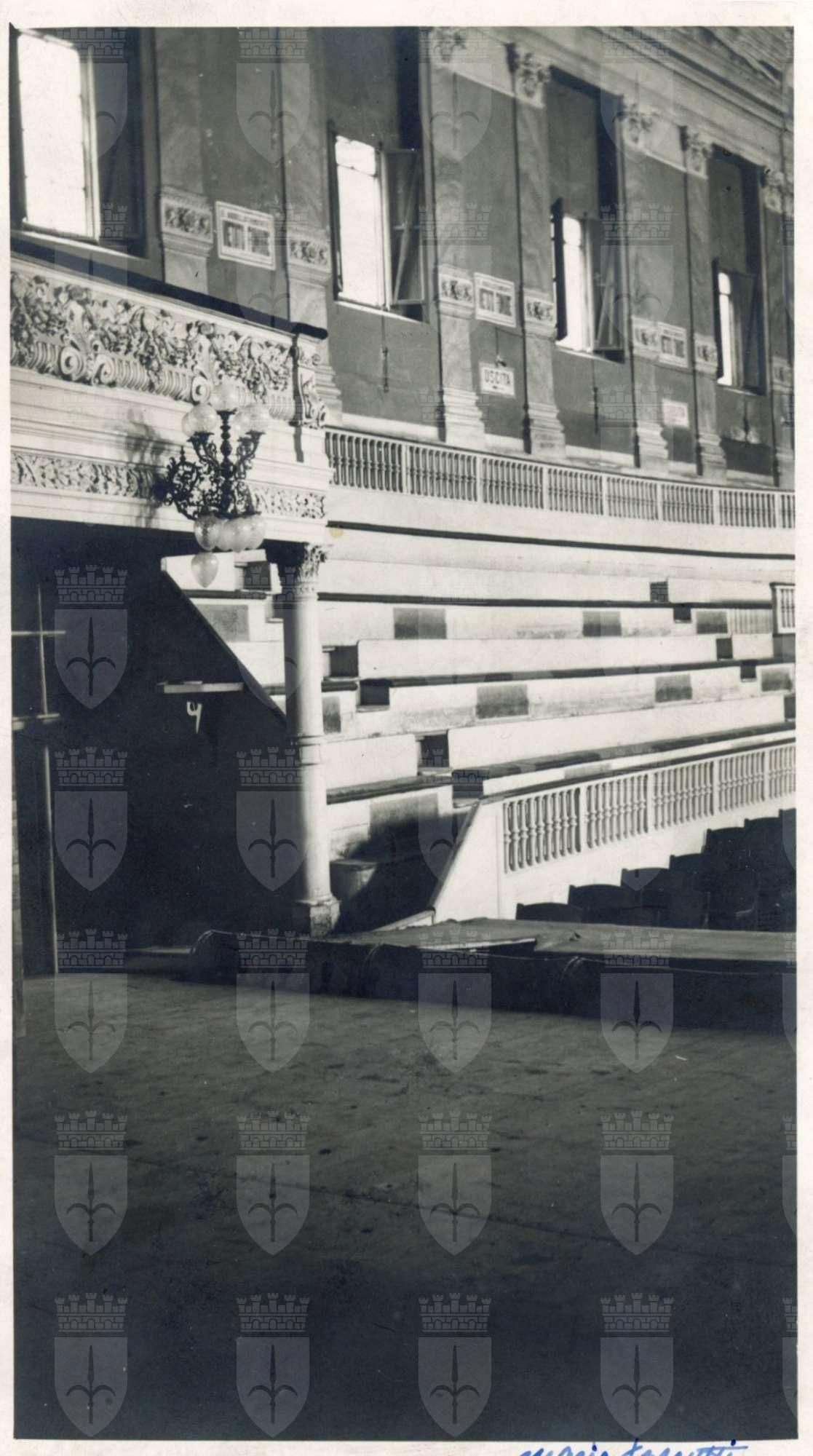 Interno della sala del Teatro Fenice di Trieste, già Anfiteatro Mauroner, poco prima dei prima dei lavori di restauro del 1937. Particolare della gradinata