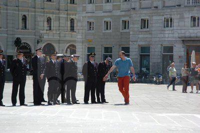 Piazza dell'Unità d'Italia: i membri della Polizia Municipale nei preparativi per lo scatto della foto di gruppo ufficiale