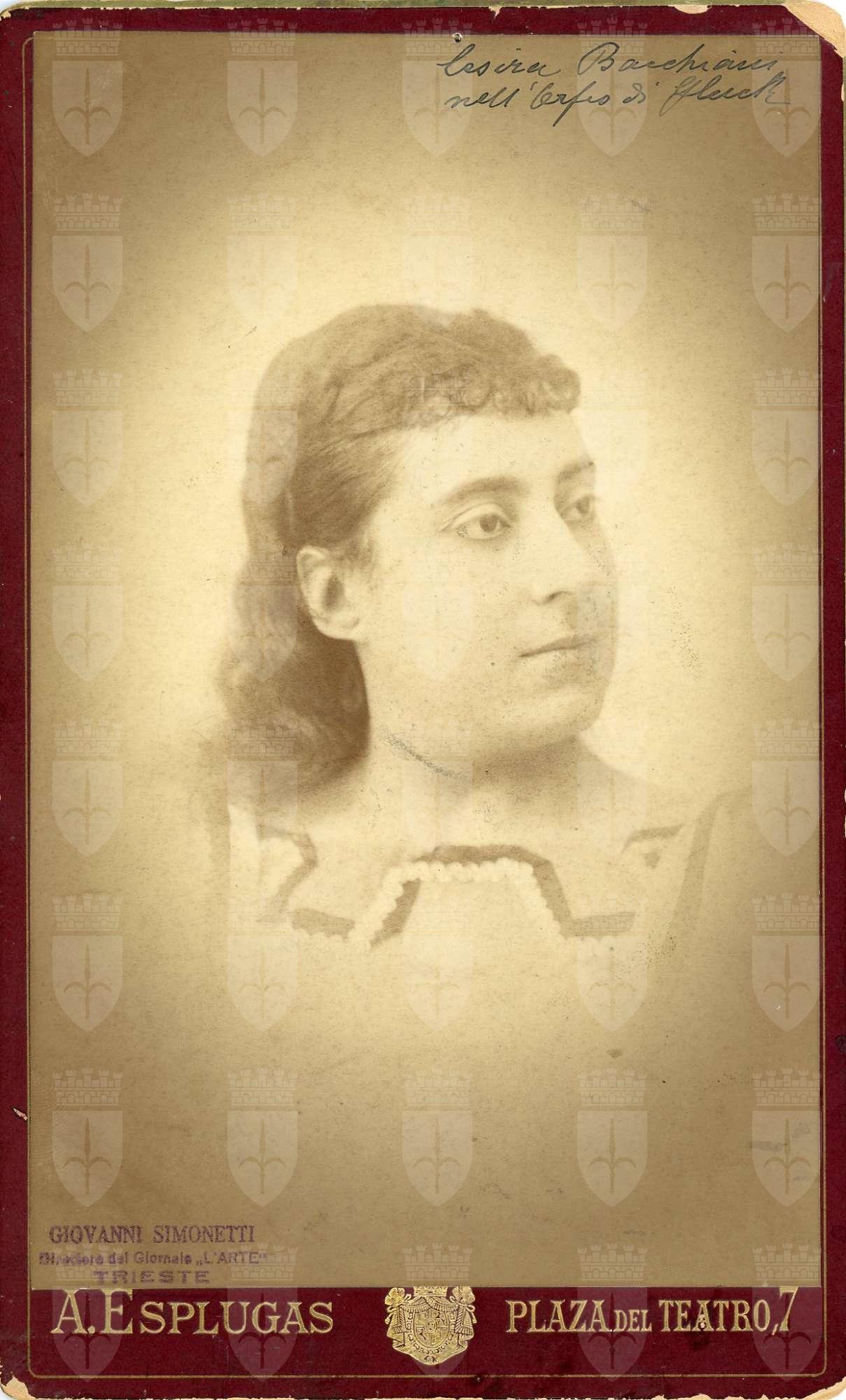 In costume: interprete di Orfeo in "Orfeo ed Euridice" di Gluck a Barcellona nel 1885. A Trieste si esibì al Politeama Rossetti nel 1880: in "Nabucco" (Fenena), "Rigoletto (Maddalena), "Jone" di E.Petrella (Nidia).