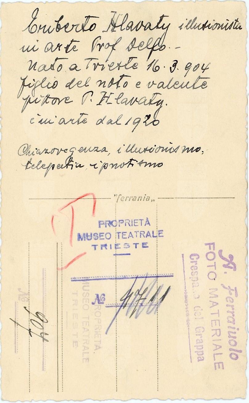 Illusionista attivo dal 1920, in arte Prof. Delfo, figlio del pittore P. Hlavaty