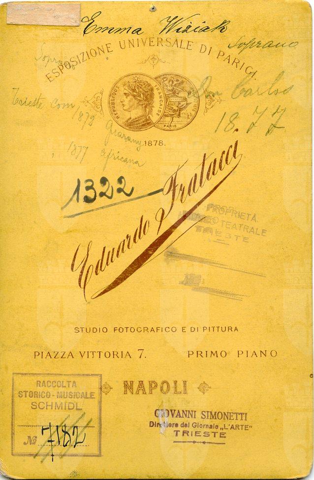 Ha cantato a Triete al Teatro Comunale nel 1872 in "Guarany", "Gli ugonotti", "Gustavo Wasa" e "Ione"e nel concerto del 7.12.1872; nel 1876 in "Don Carlos" e nel 1877 in "L' africana" e "La contessa di Amalfi"