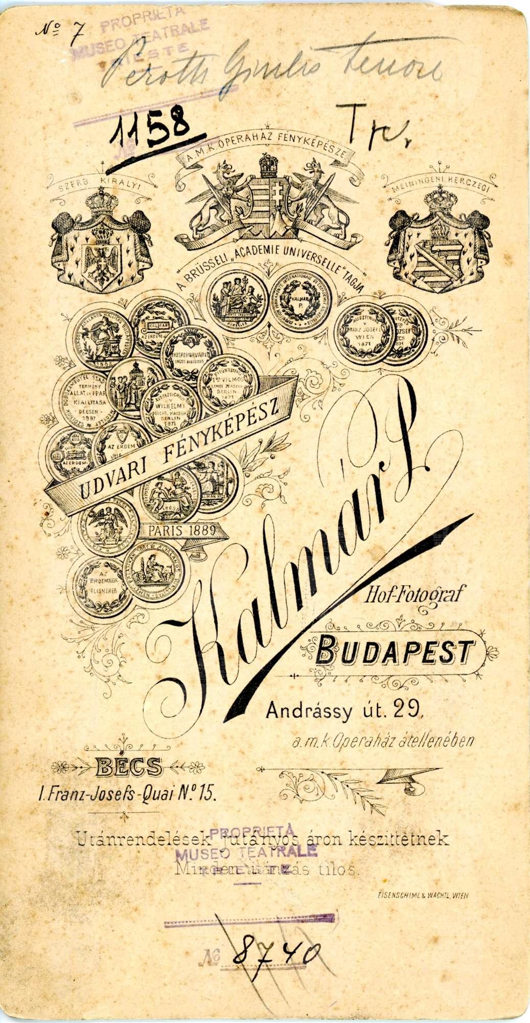 In costume. Alias Julius Prott, tenore, si è esibito in molte città d'Europa e d'America. Nel 1874 ha cantato al teatro Mauroner di Trieste nel "Trovatore". Appassionato di giardinaggio, alla fine della sua carriera si è stabilito a Trieste dove ha aperto un'azienda per la coltura delle rose riconosciuta a livello internazionale; si può anche ricordare lo storico negozio di fiori in Capo di Piazza.