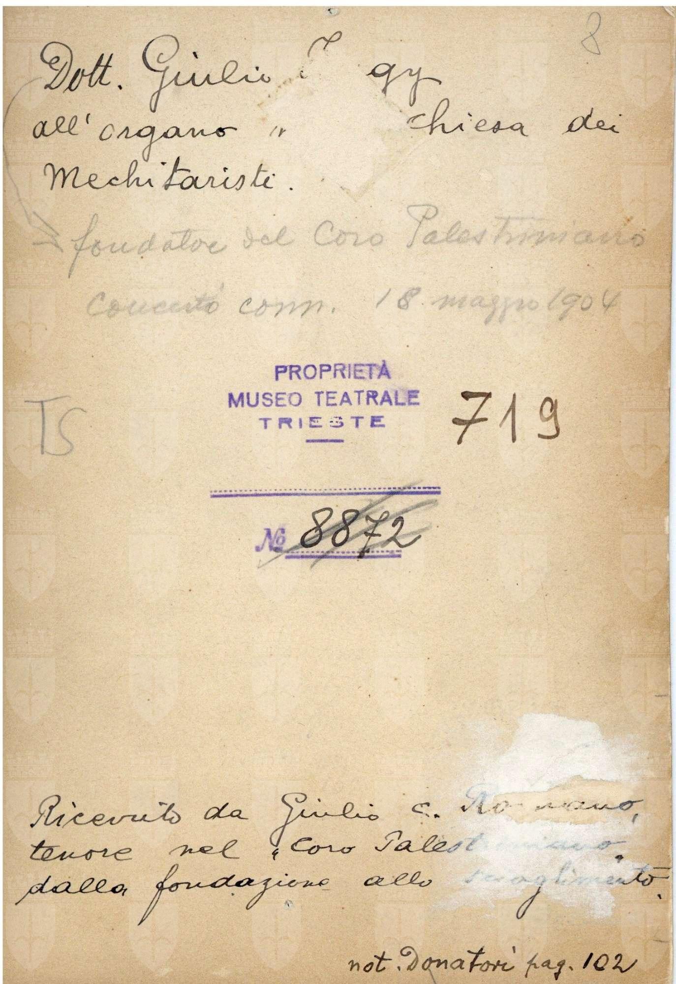 Alpinista e appassionato organista, donò, nel novembre 1894, l'organo (realizzato a Vienna dai fratelli Rieger) alla chiesa dei Mechitaristi che gli consentirono di esercitarsi nella sede di via Giustinelli con l'accordo di accompagnare le funzioni domenicali