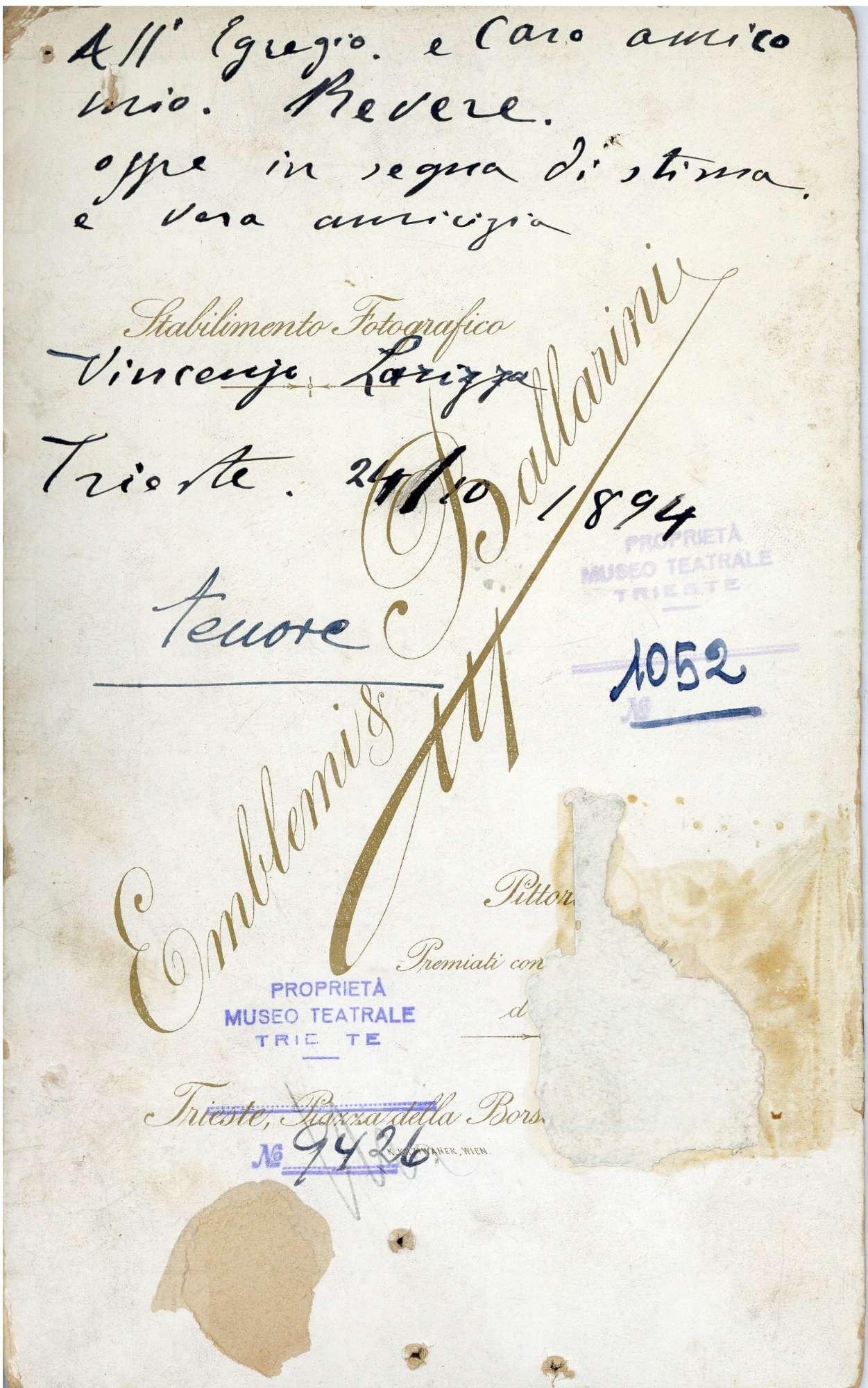 In costume. Ha cantato a Trieste: all'Anfiteatro Fenice "La forza del destino" e "I pagliacci" nel 1894; al Politeama Rossetti in "Un ballo in maschera" nel 1895