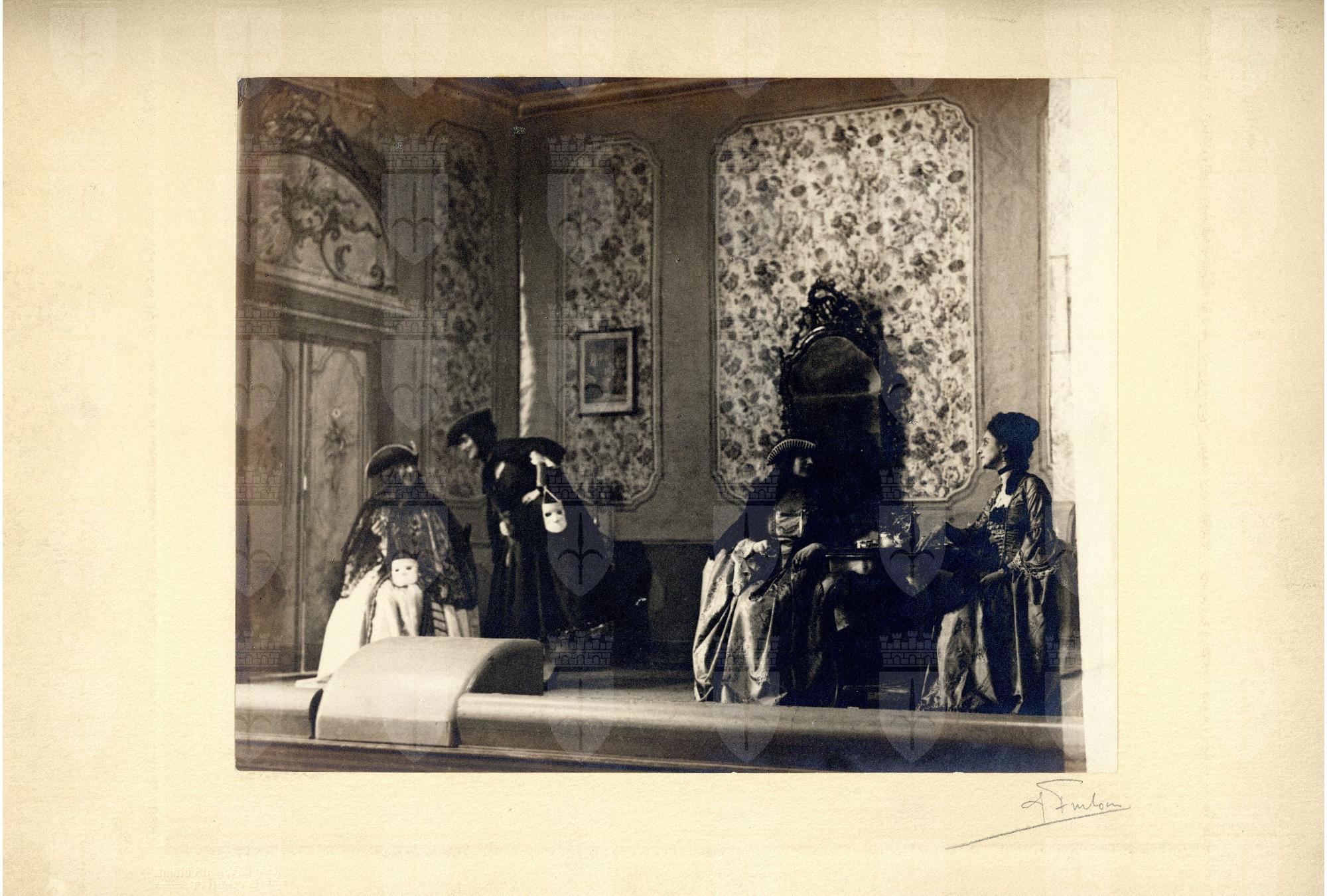 Scene e attori dilettanti della commedia rappresentata dal Circolo Artistico di Trieste dal 4 al 6 aprile 1923, regia di Guido Hermet. Protagonisti: Orazio Sturli, Livia Rimini, Mariuccia Gerussi, Fabio Venezian, Dolores Tarabocchia, Aurelio Zuculin, Bice Randegger Richetti, Nanà Orel-Held, Alberto Riccoboni
