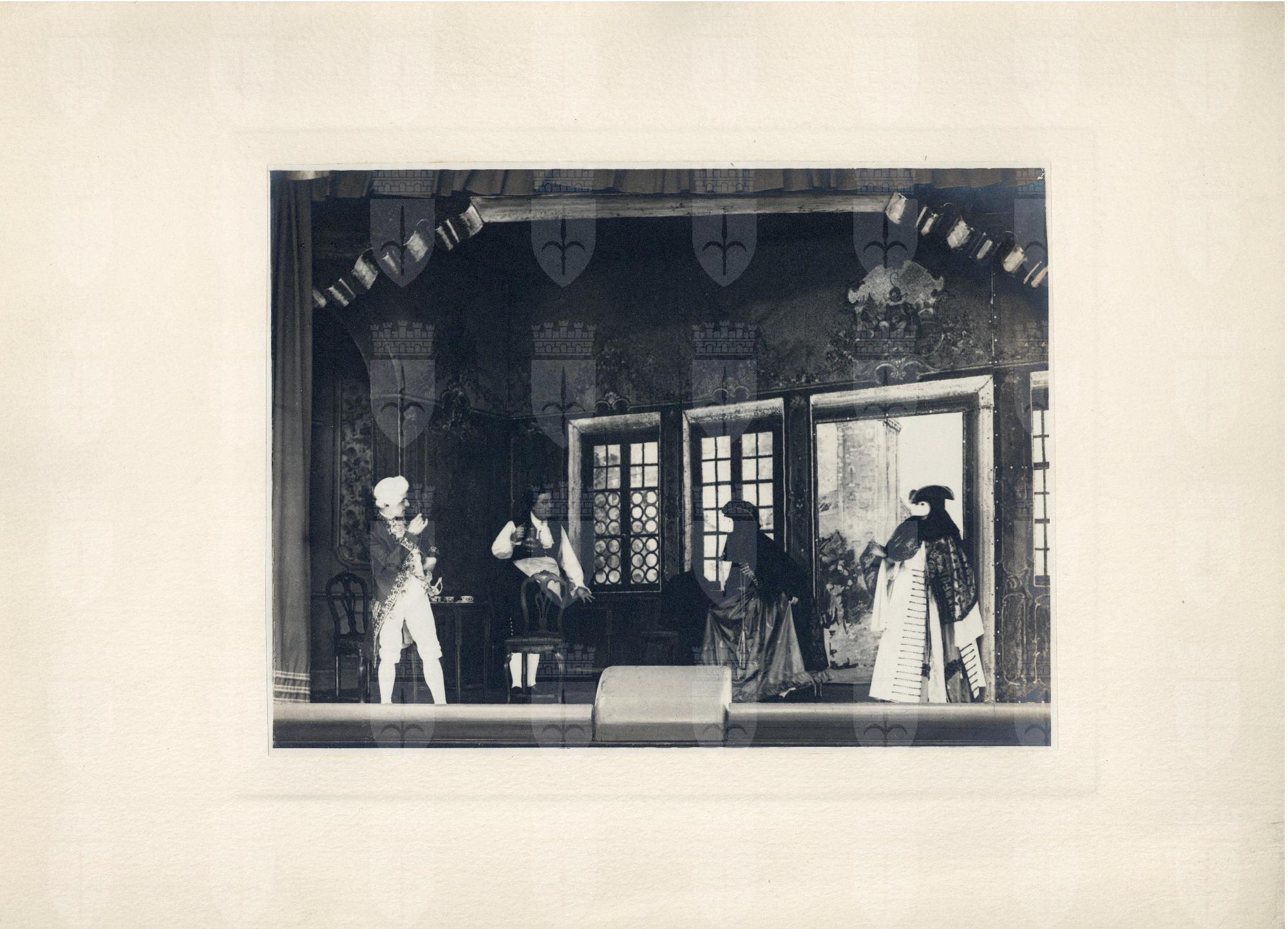 Scene e attori dilettanti della commedia rappresentata dal Circolo Artistico di Trieste dal 4 al 6 aprile 1923, regia di Guido Hermet. Protagonisti: Orazio Sturli, Livia Rimini, Mariuccia Gerussi, Fabio Venezian, Dolores Tarabocchia, Aurelio Zuculin, Bice Randegger Richetti, Nanà Orel-Held, Alberto Riccoboni
