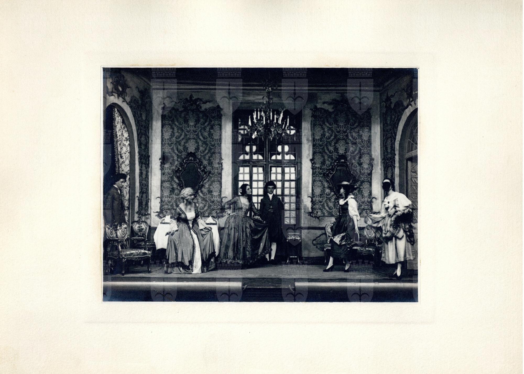 Scene e attori dilettanti della commedia rappresentata dal Circolo Artistico di Trieste dal 4 al 6 aprile 1923, regia di Guido Hermet. Protagonisti: Orazio Sturli, Livia Rimini, Mariuccia Gerussi, Fabio Venezian, Dolores Tarabocchia, Aurelio Zuculin, Bice Randegger Richetti, Nanà Orel-Held, Alberto Riccoboni