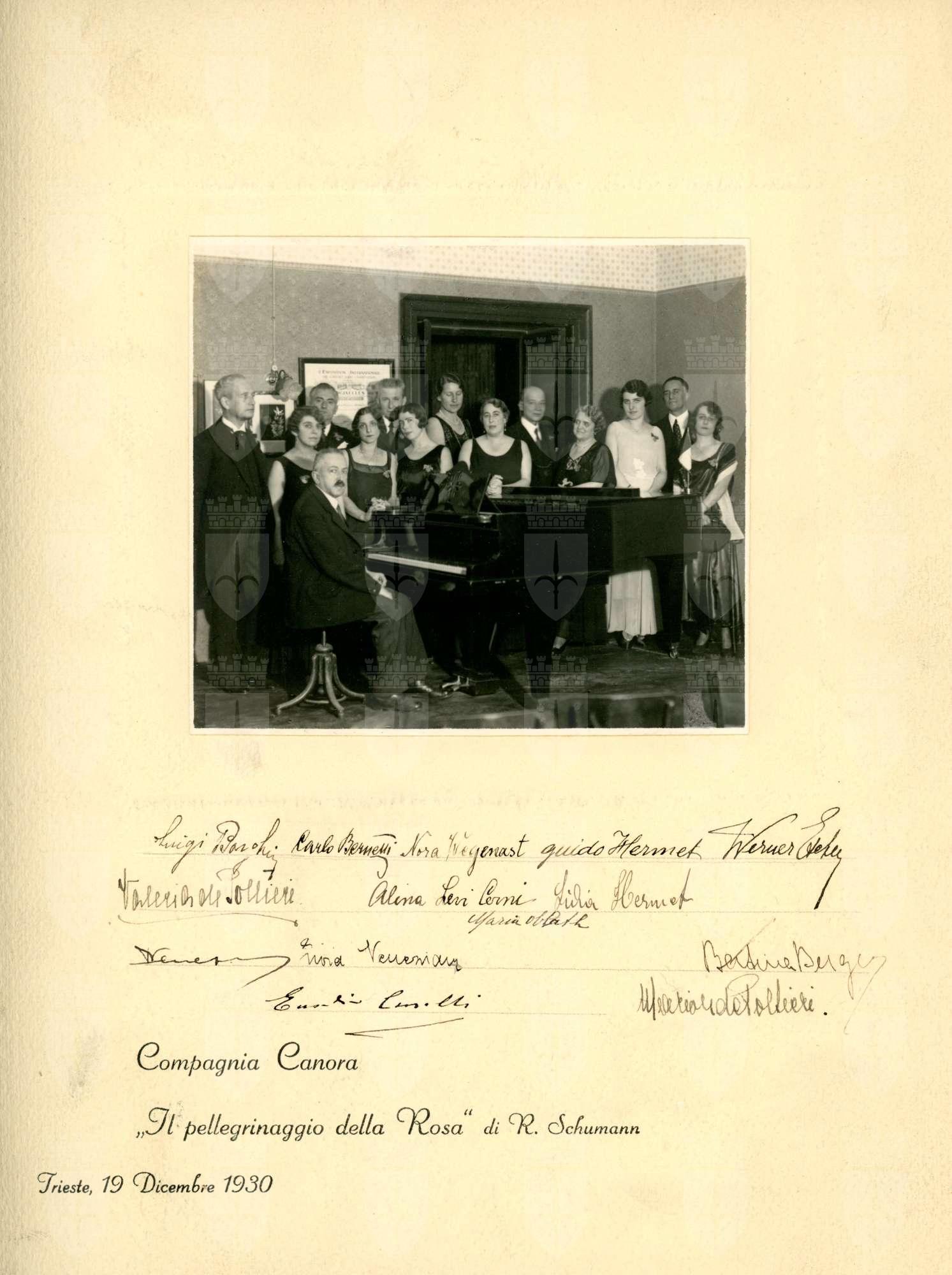 Compagnia Canora in "Il pellegrinaggio della Rosa" di R. Schumann, Trieste, 19 dicembre 1930