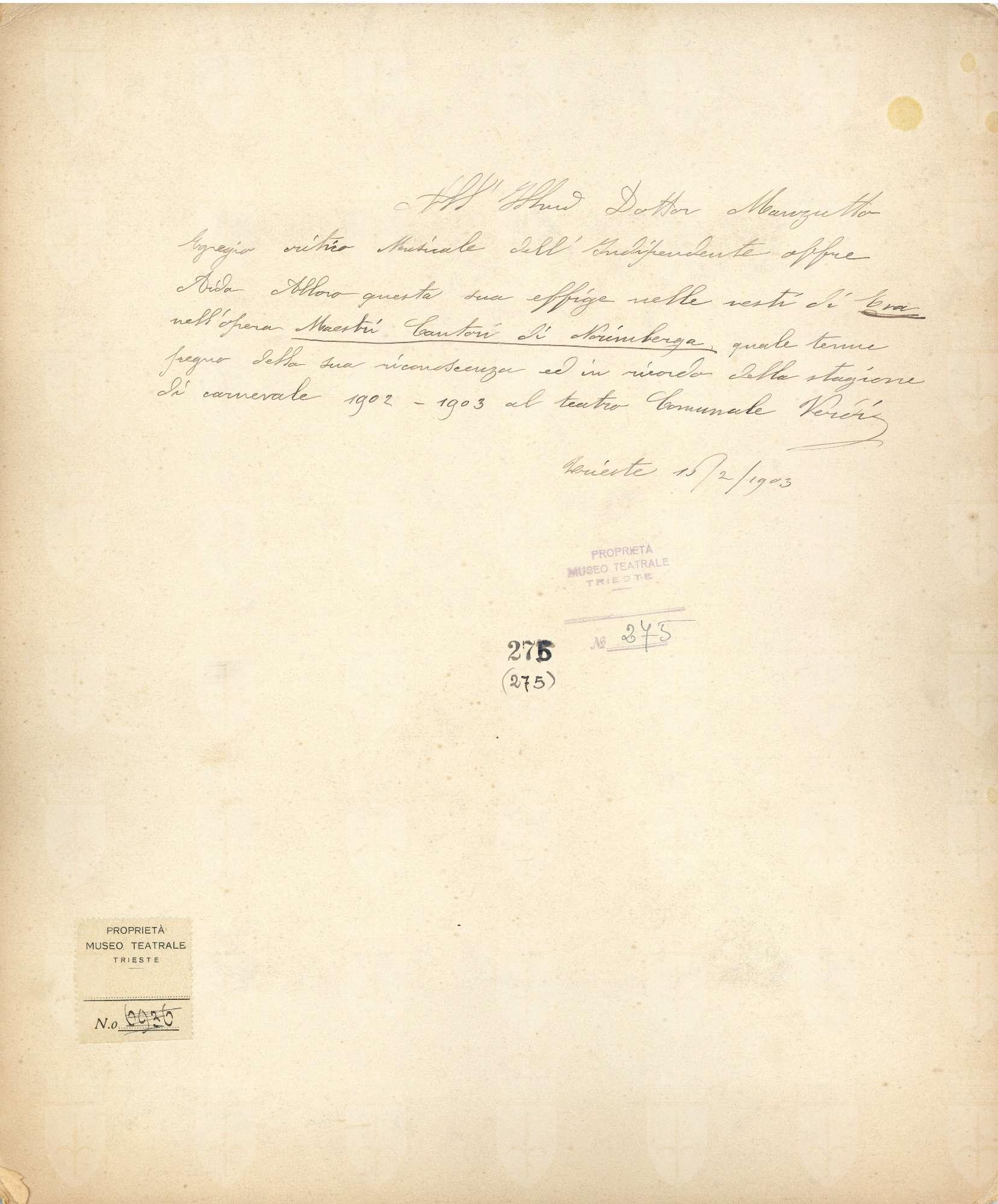 Proprietà Ente pubblico territoriale; Civico museo teatrale C. Schmidl