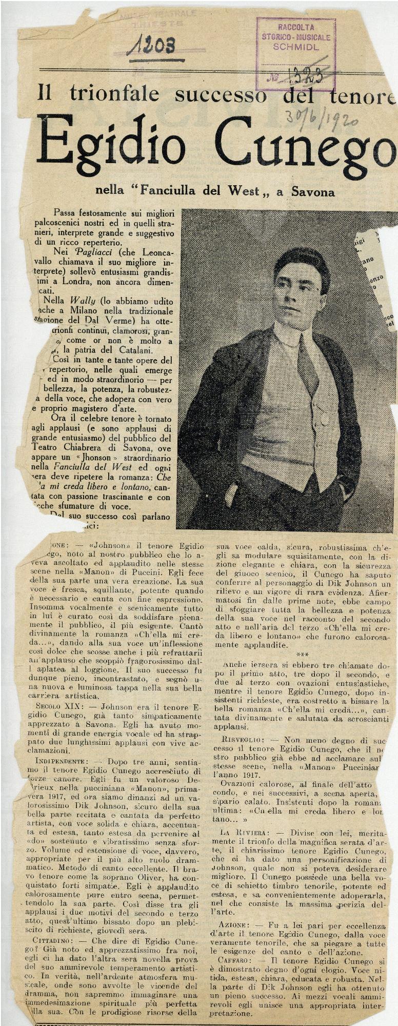 Egidio Cunego nella Fanciulla del West a Savona
