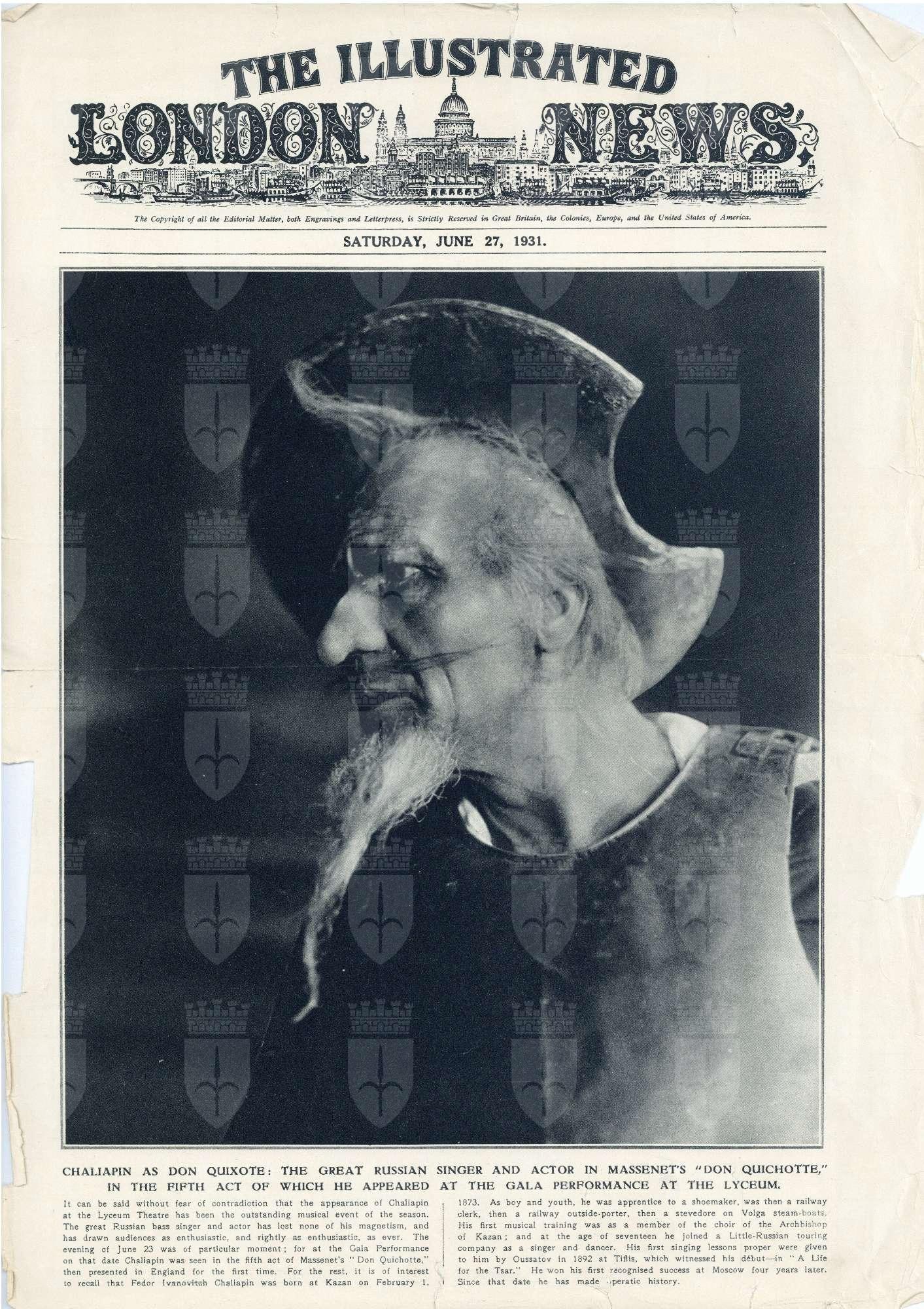 Il basso Chaliapin nel ruolo di Don Chisciotte nel quinto atto al gala al Lyceum Theatre