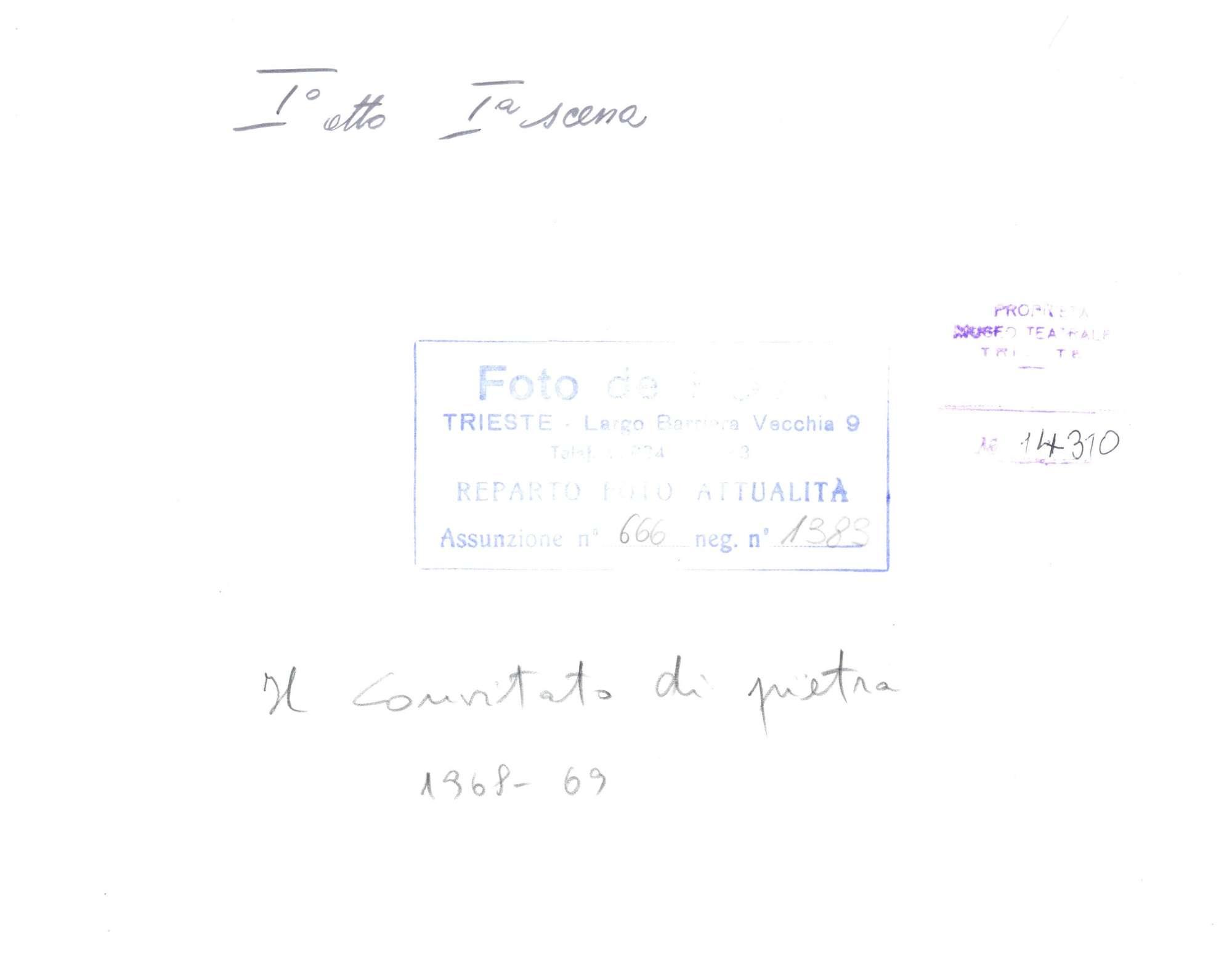 Il convitato di pietra, 1968-2969, 1. atto 1., scena