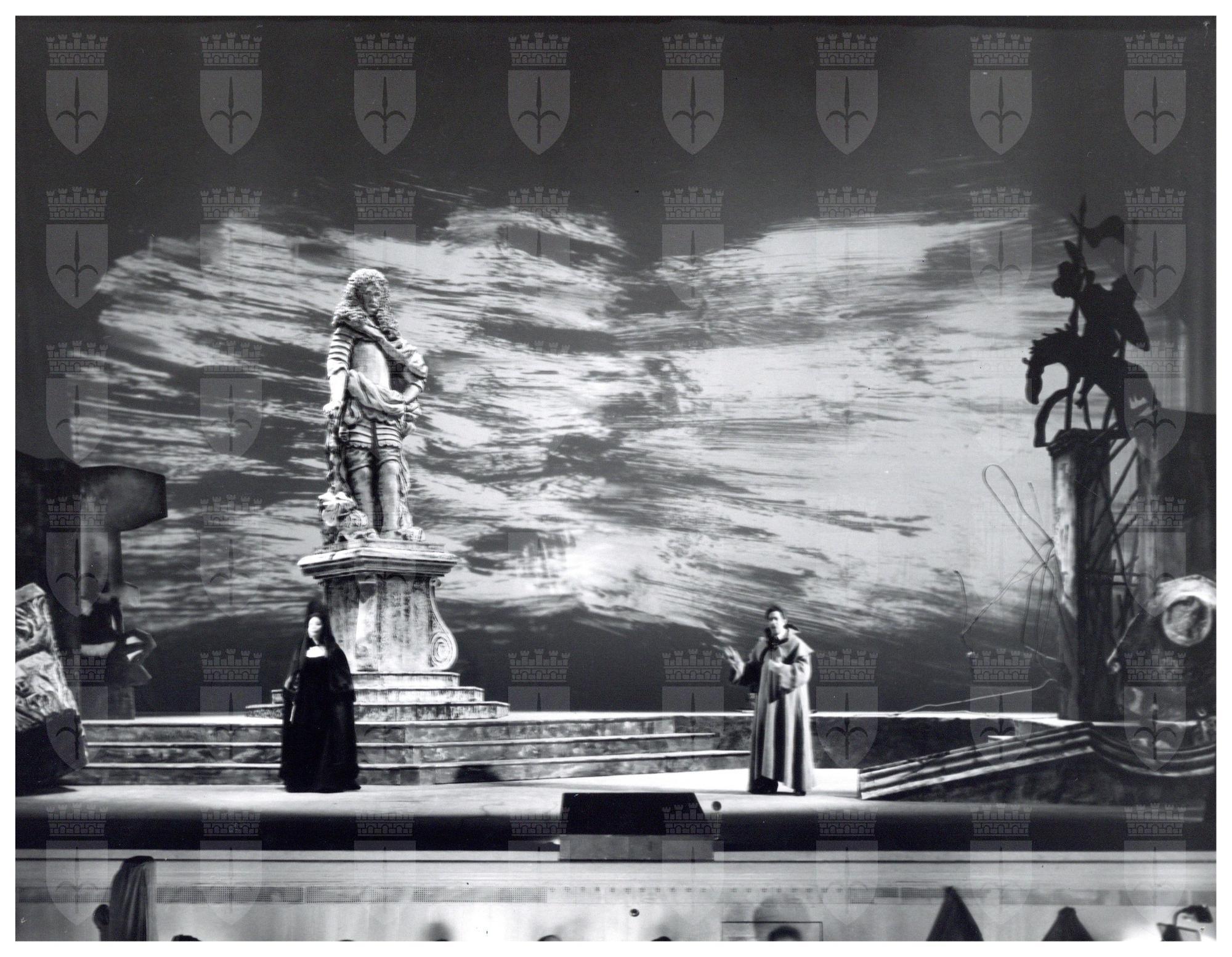 Scenografia di Giuseppe Zigaina di Il convitato di pietra, atto 1 scena 1, teatro Verdi, stagione lirica 1968-1969