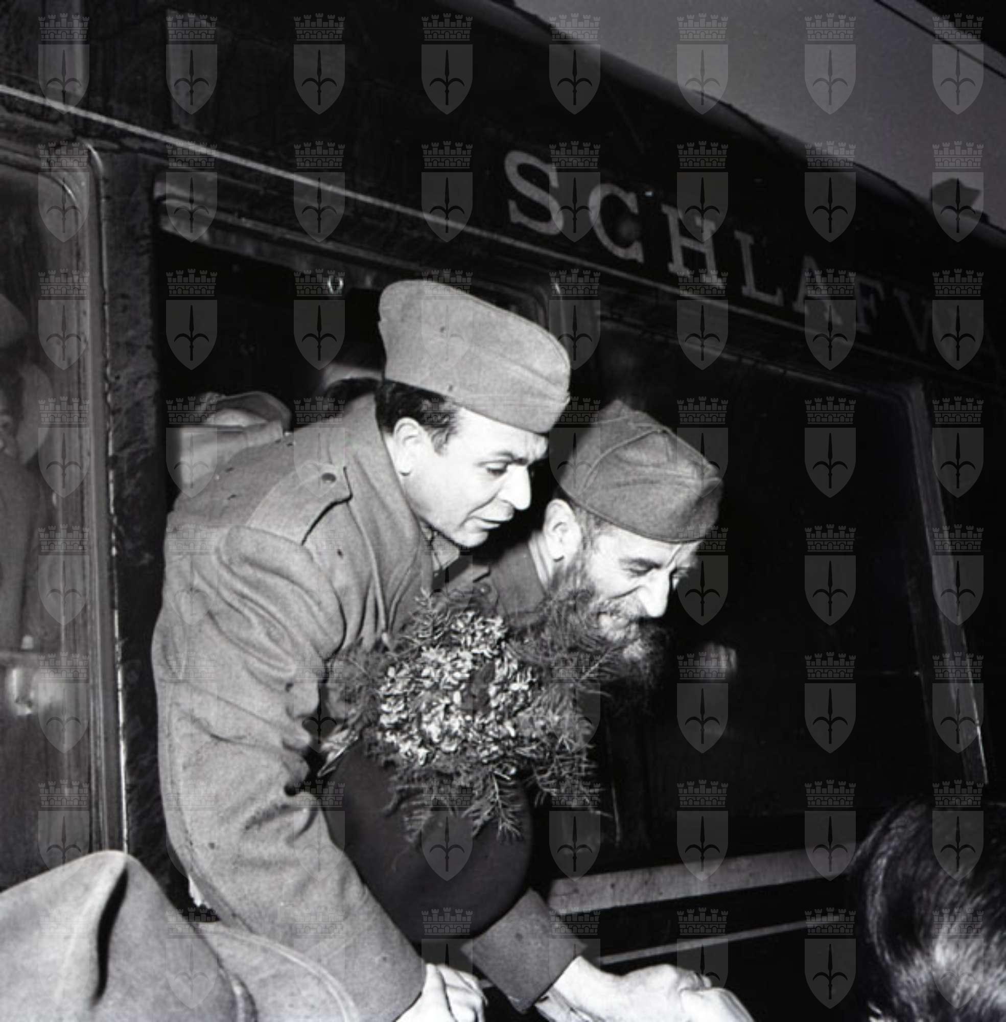 Dopo dodici anni di prigionia in Russia, ritorna a casa uno scaglione di reduci della Seconda guerra mondiale, accolto alla stazione di Udine