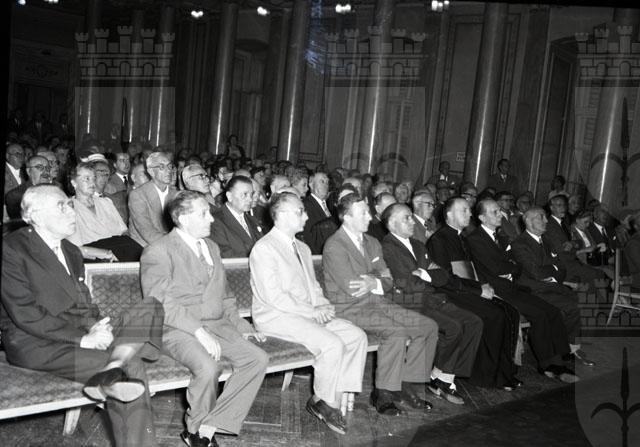 Alla cerimonia, che si è svolta al Ridotto del Verdi, erano presenti le più alte cariche cittadine e dello Stato e rappresentanti della varie istituzioni. L'onorevole Bettiol, che gli fu vicino lungamente e con affettuosa amicizia, ha fatto presente che Trieste è la prima città d'Italia che a otto giorni dalla dipartita di De Gasperi ne commemora la figura. Il Sindaco Bartoli ha ricordato come lo statista per la salvezza di Trieste e della zona B pose ad ostaggio la sua vita. Notizie tratte dal Giornale di Trieste 29.08.1954