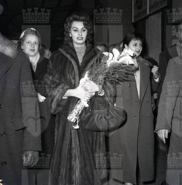 Giunta a Trieste con la sorella per partecipare a un ricevimento benefico dato in suo onore dalla Croce Rossa Italiana, Sophia Loren effettua un tour della città accompagnata anche dallo scultore Marcello Mascherini.