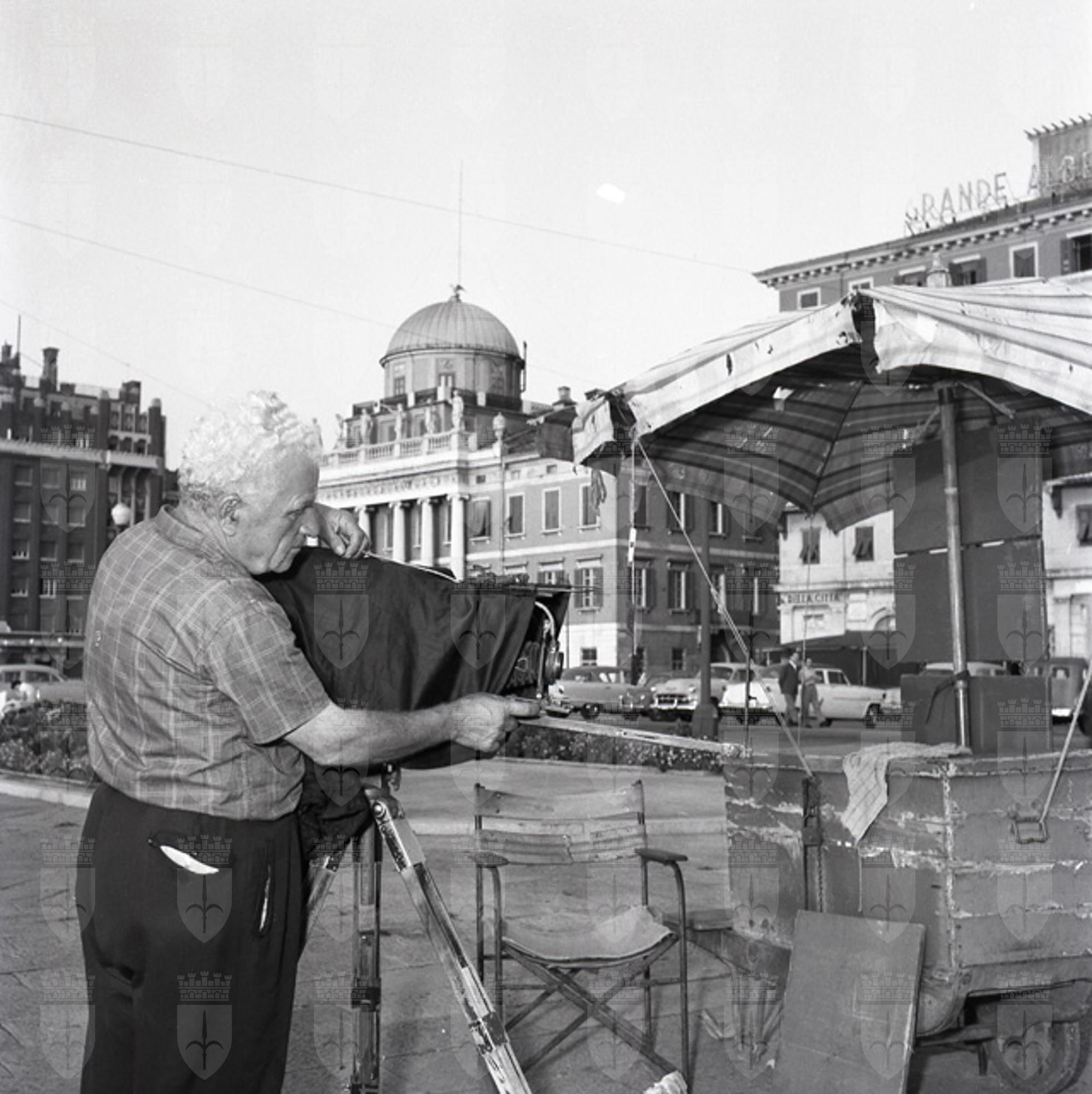 Beniamino Mauri è, negli anni Cinquanta, il capogruppo del Sindacato dei fotografi ambulanti. I fotografi cassettisti dispongono essenzialmente di una fotocamera all'interno della quale è possibile collocare il materiale sensibile da utilizzare, che generalmente consiste in carte postali alla gelatina-bromuro prodotte espressamente per questo genere di fotografia. Questa stessa fotocamera accoglie in vaschette speciali i bagni per i trattamenti. Si inizia ottenendo la fotografia matrice su una di queste carte postali, sulla quale l'immagine si presenterà in negativo. Questa immagine dovrà essere successivamente riprodotta con la medesima fotocamera, mediante un'altra carta postale, ottenendo così la copia positiva. Questo procedimento consente di ottenere il numero di copie desiderato. Tratto da Rafael Garriga, "Manuale del Minutero", Barcellona, maggio 1926