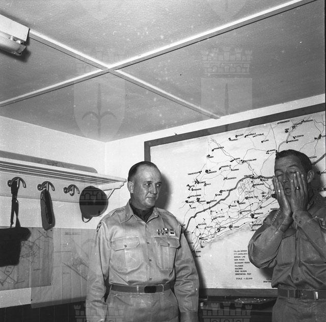 Il generale John A. Dabney, comandante delle truppe americane, predispone lo sgombero delle truppe statunitensi e viene immortalato davanti alla carta del Territorio. Il fotogramma UBNP000981_004 è pubblicato su Il Giornale di Trieste senza l'indicazione dell'autore.