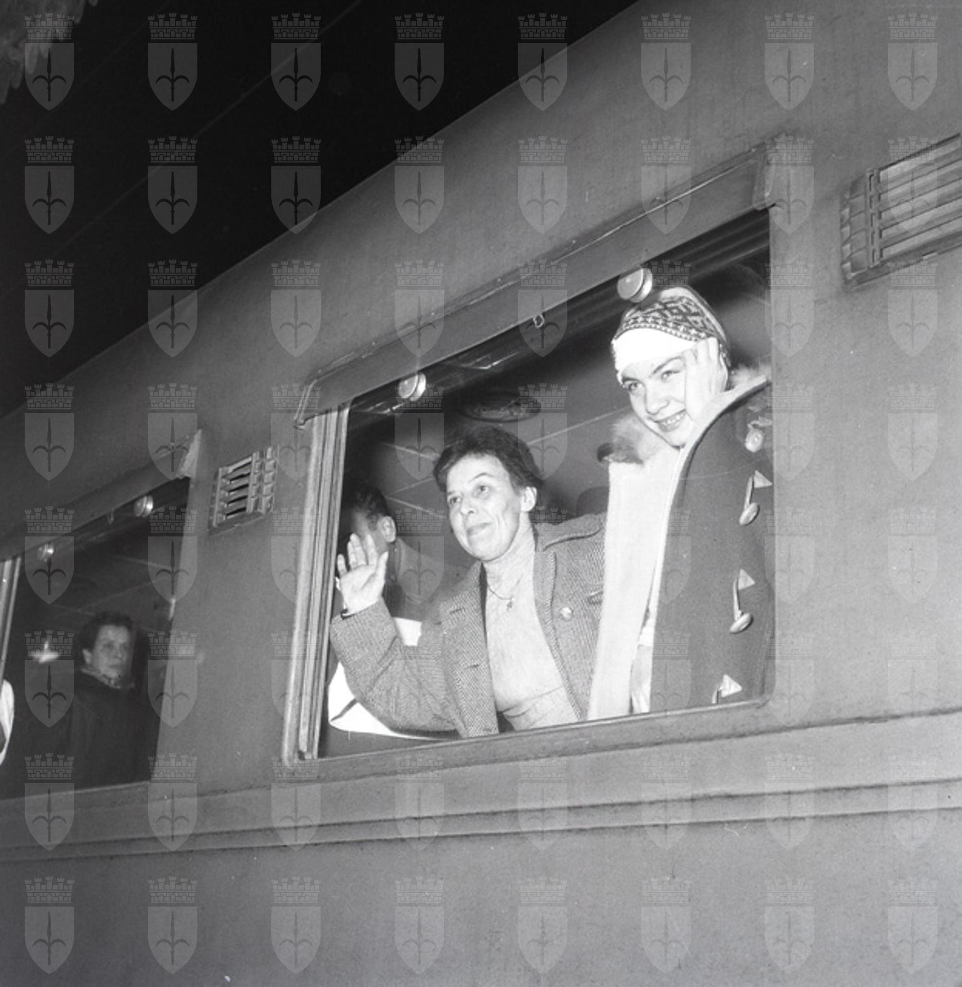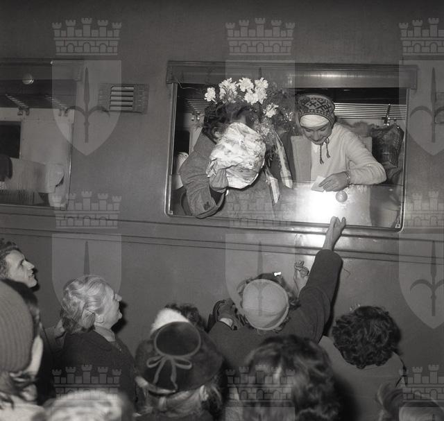 La giovane gradiscana Alessandra Fornasiero rientra da un viaggio a Stoccolma dove è stata operata dal professore Herbert Olivecrona. Con una sottoscrizione il Piccolo finanzia l'intervento che viene descritto nelle pagine del giornale. La documentazione fotografica utilizzata dal giornale è di Giornalfoto. Il servizio di Foto Omnia documenta anche il rientro a Gradisca.