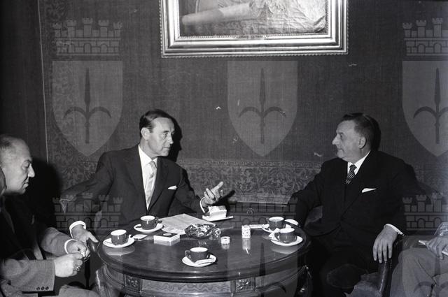 L'ambasciatore Klaiber arriva in città con la nave Saturnia. Accompagnato dal presidente della Camera di commercio Caidassi e dal presidente dell'Ente Fiera Suttora, Klaiber incontra alcuni dei maggiori esponenti della vita economica cittadina. Tratto da Il Piccolo sera del 22.09.1962