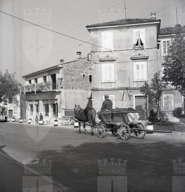 E' presente un carro condotto da cocchiere a cavallo