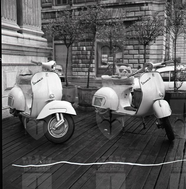 In un locale di Piazza Unità viene presentata alla stampa la nuova Vespa Gran Sport 1962. All'evento è presente anche il Sindaco Franzil. Notizie tratte da Il Piccolo Sera del 4 dicembre 1961