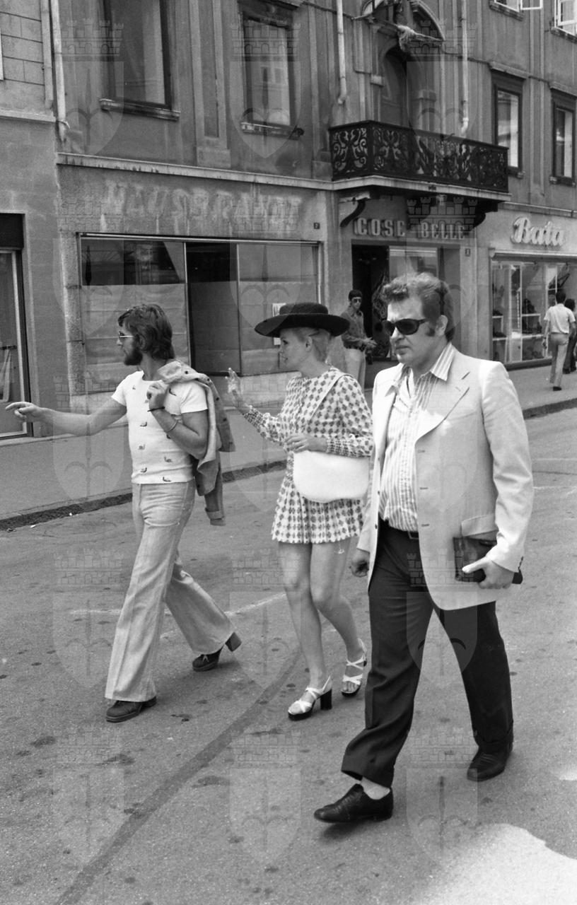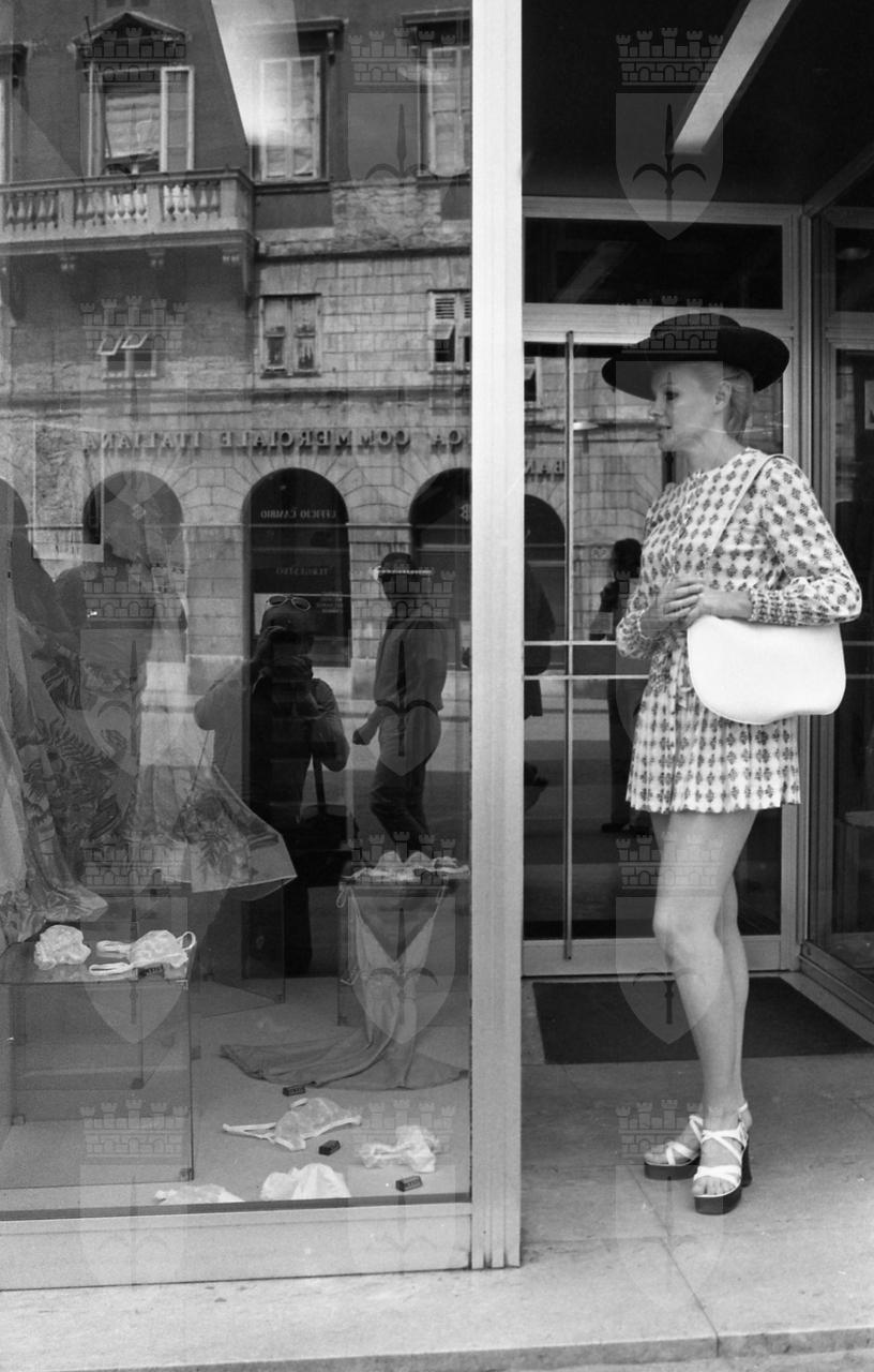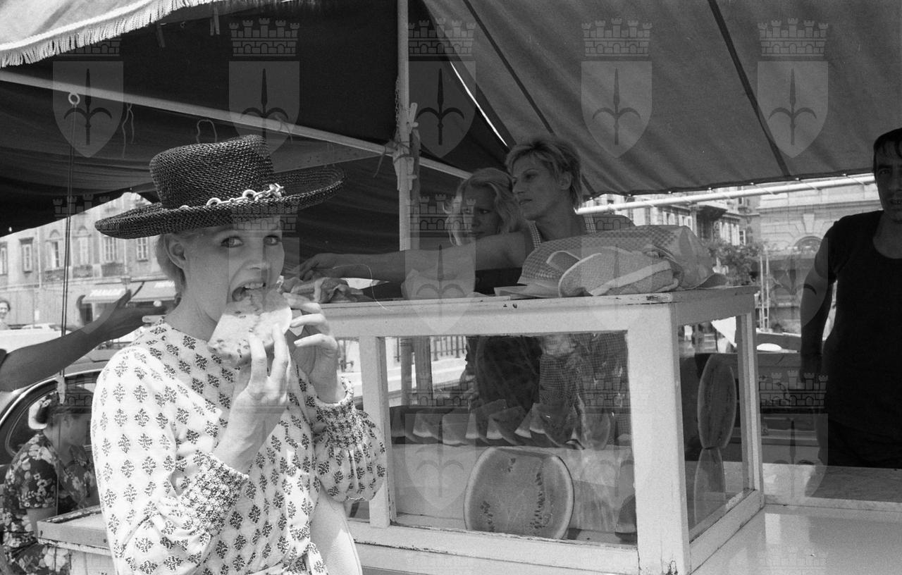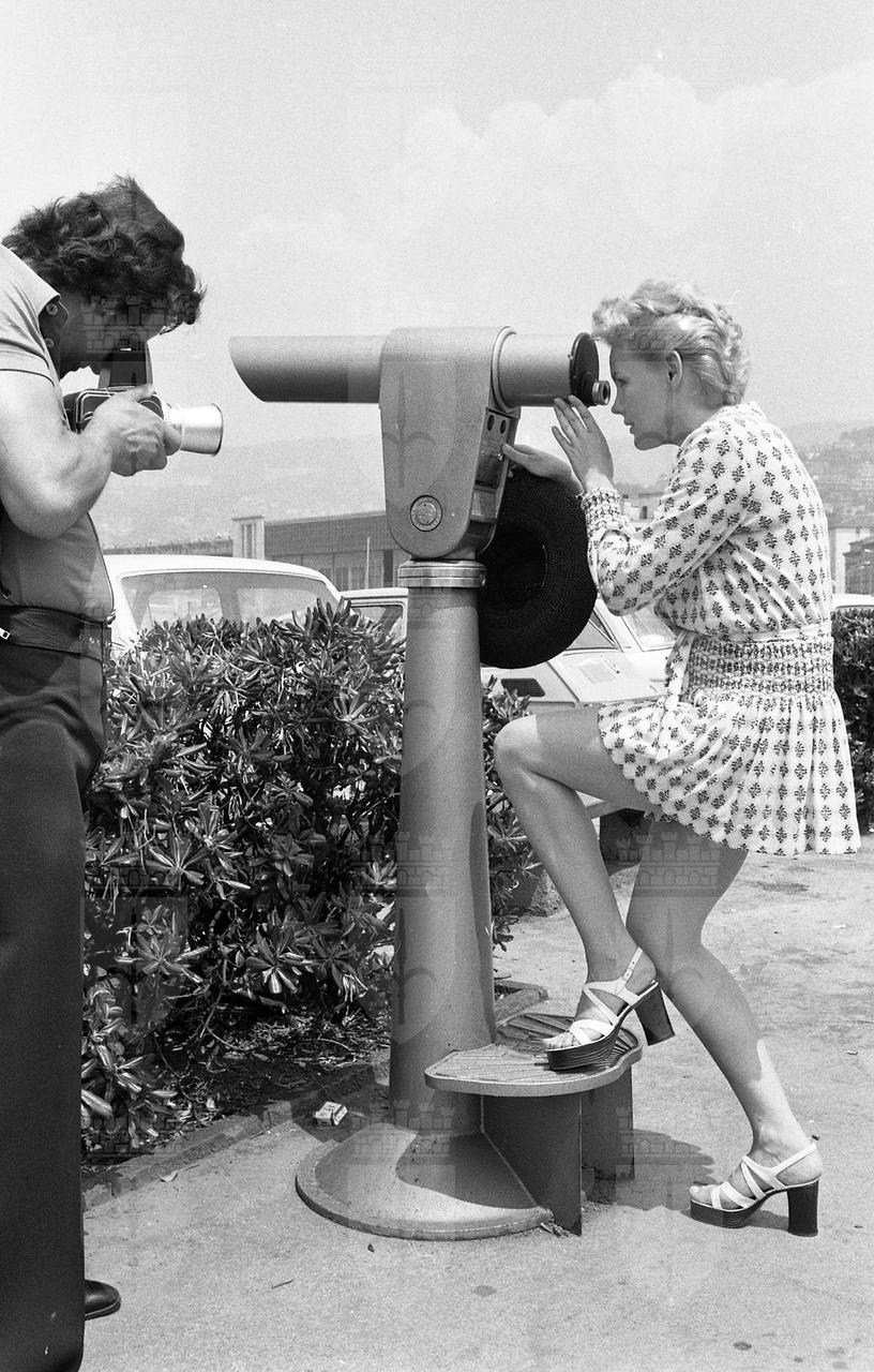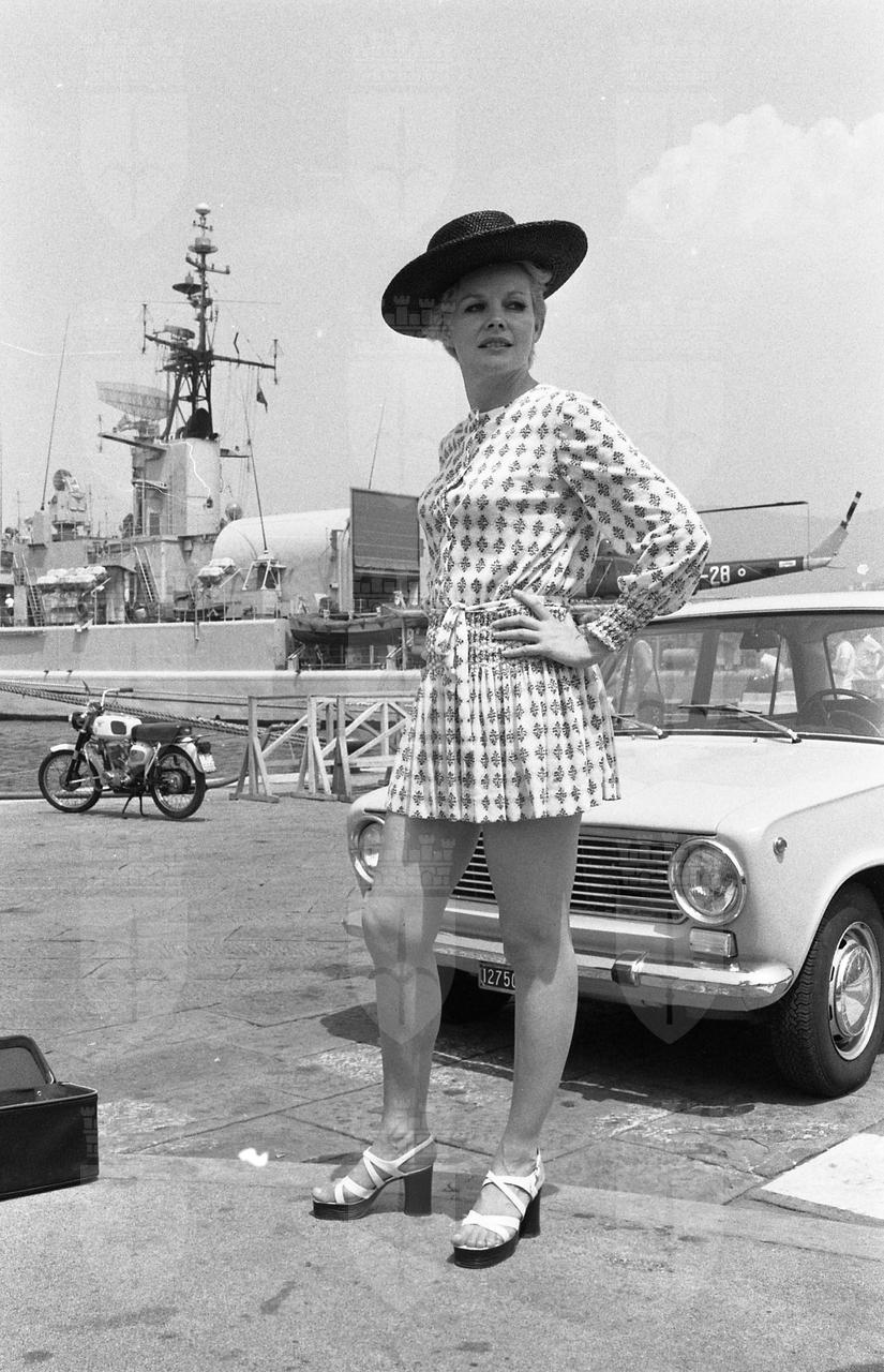 Caroll Baker assiste alla proiezione del film Baba Yaga del regista Corrado Farina insieme all'attrice Isabella da Funes.