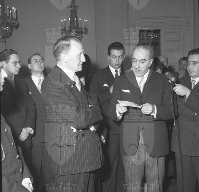 Con una solenne cerimonia in Prefettura, il maggior generale inglese sir Terence Airey si congeda dalle autorità politiche cittadine (da: Trieste 1900-1999: cent'anni di storia, v. 6, p. 184)