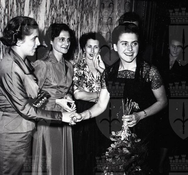 Ricevimento in onore della triestina Irene Camber, medaglia d'oro nel fioretto femminile alle 15. Olimpiadi di Helsinki.