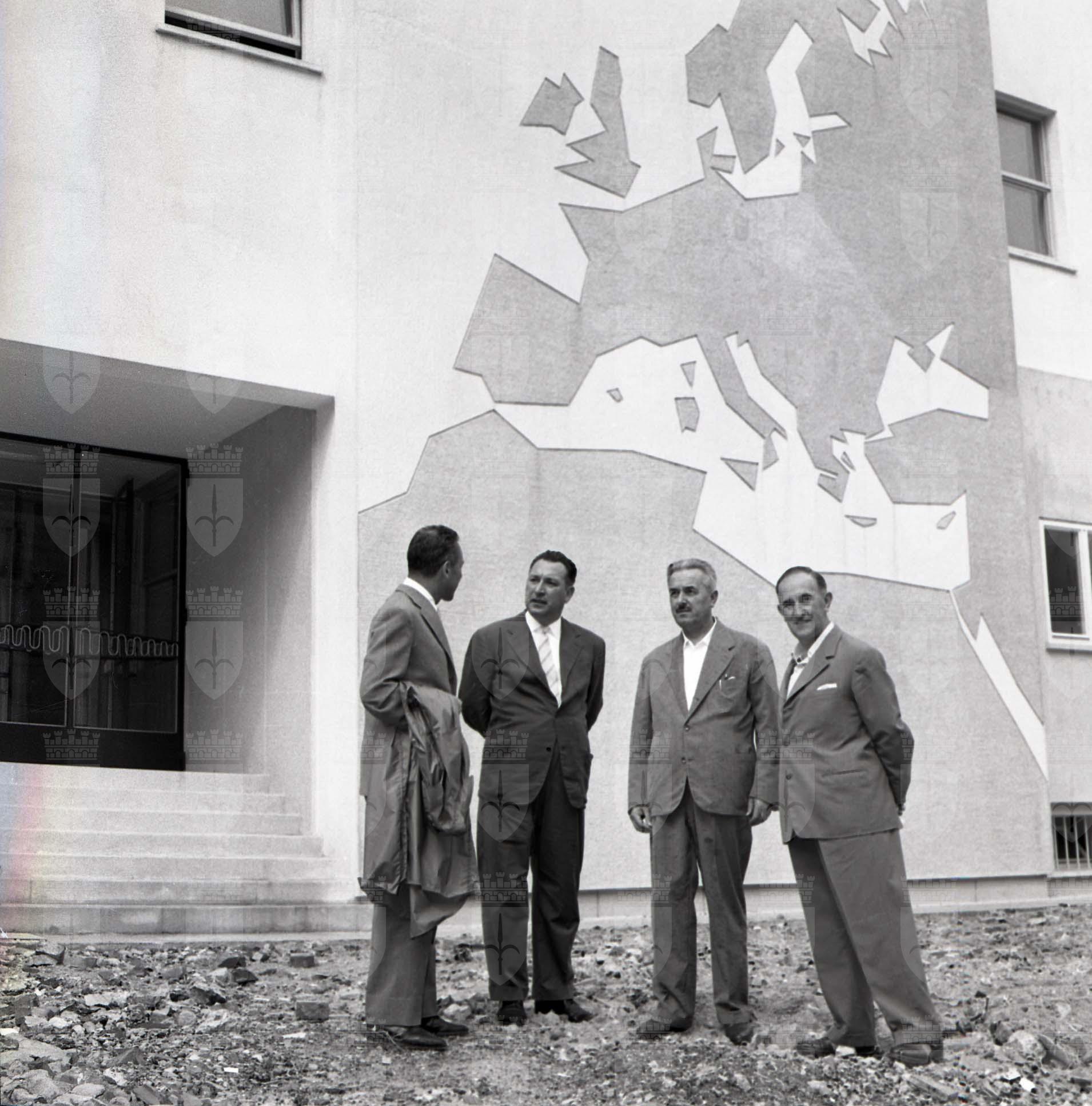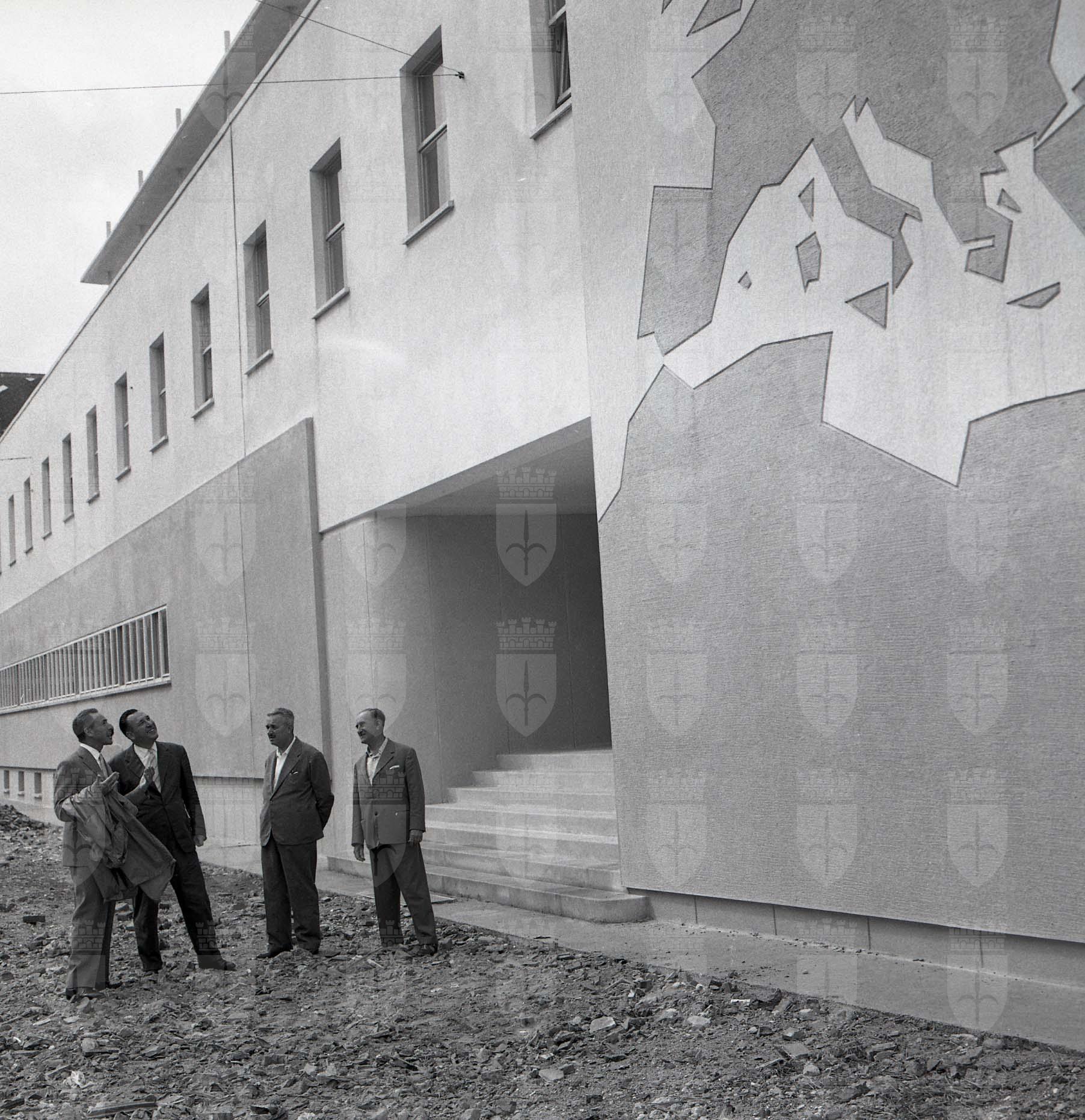 L'edificio della futura scuola di avviamento al lavoro, poi scuola media Antonio Bergamas, viene visitato dal prosindaco Visintin, assessore ai lavori pubblici del Comune di Trieste, a costruzione quasi ultimata. I lavori sono stati affidati all'impresa Canarutto.