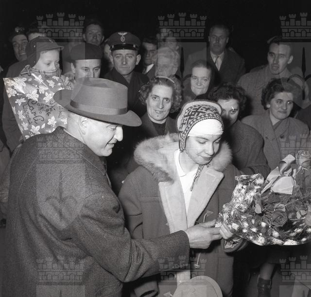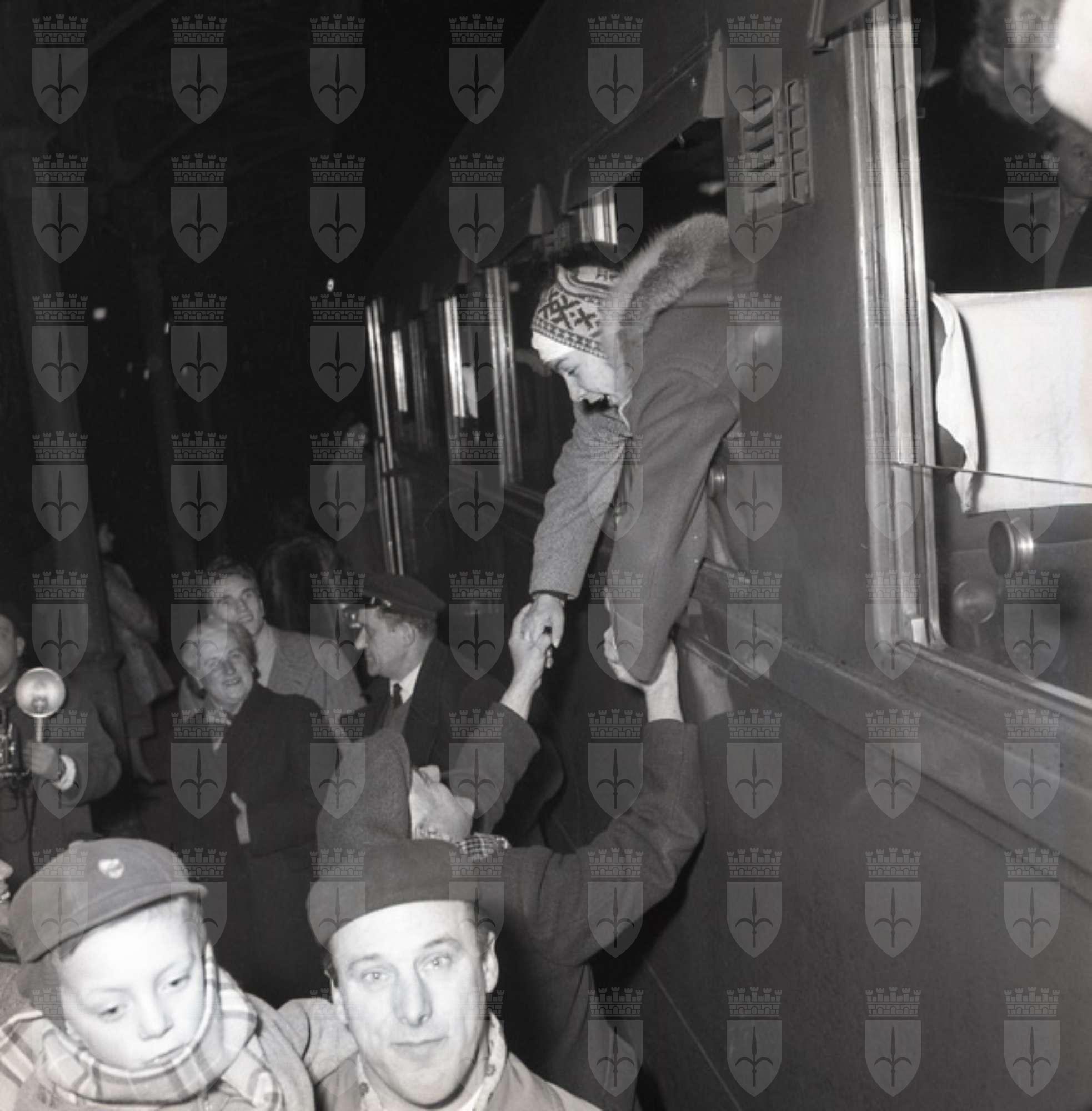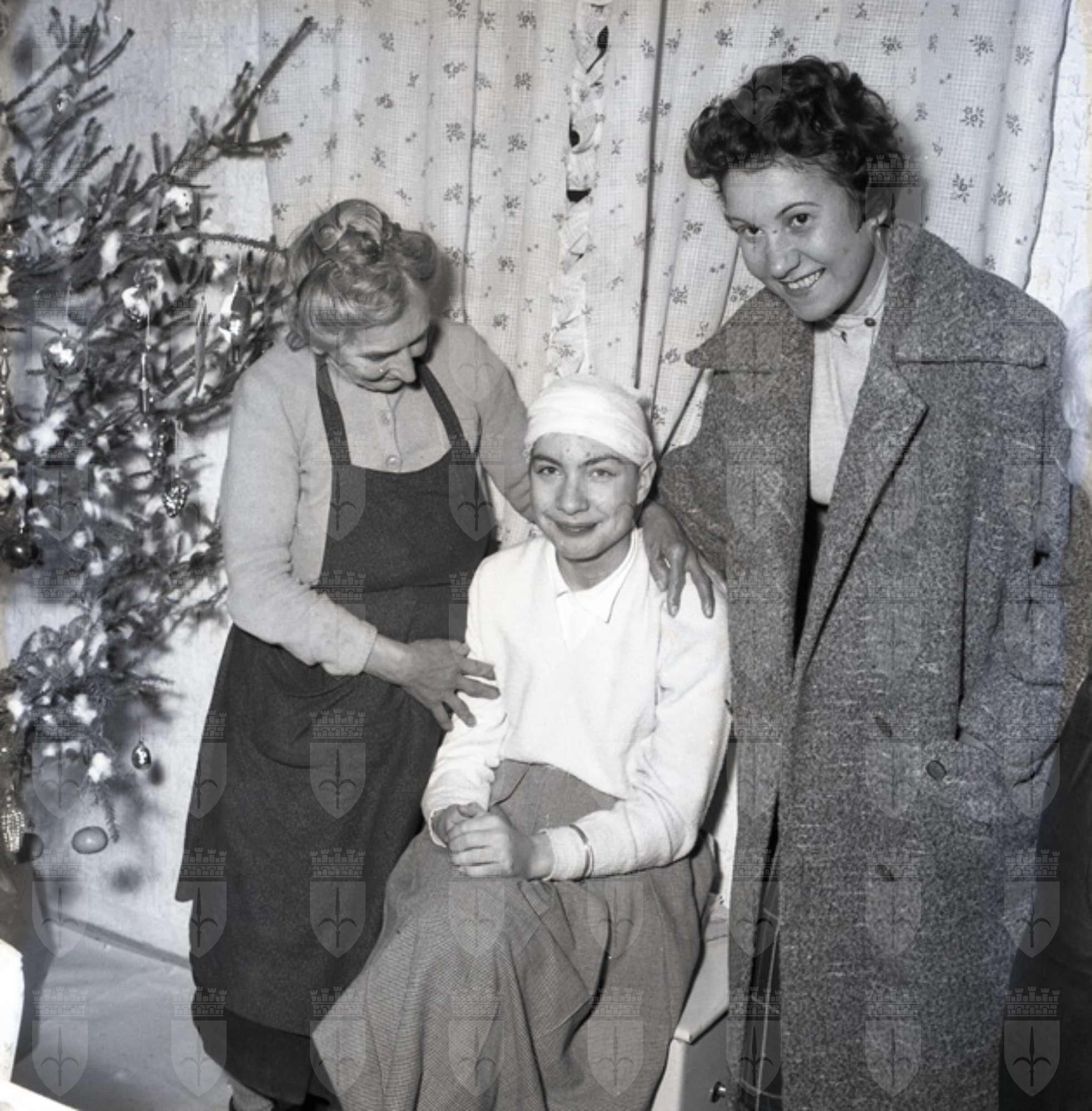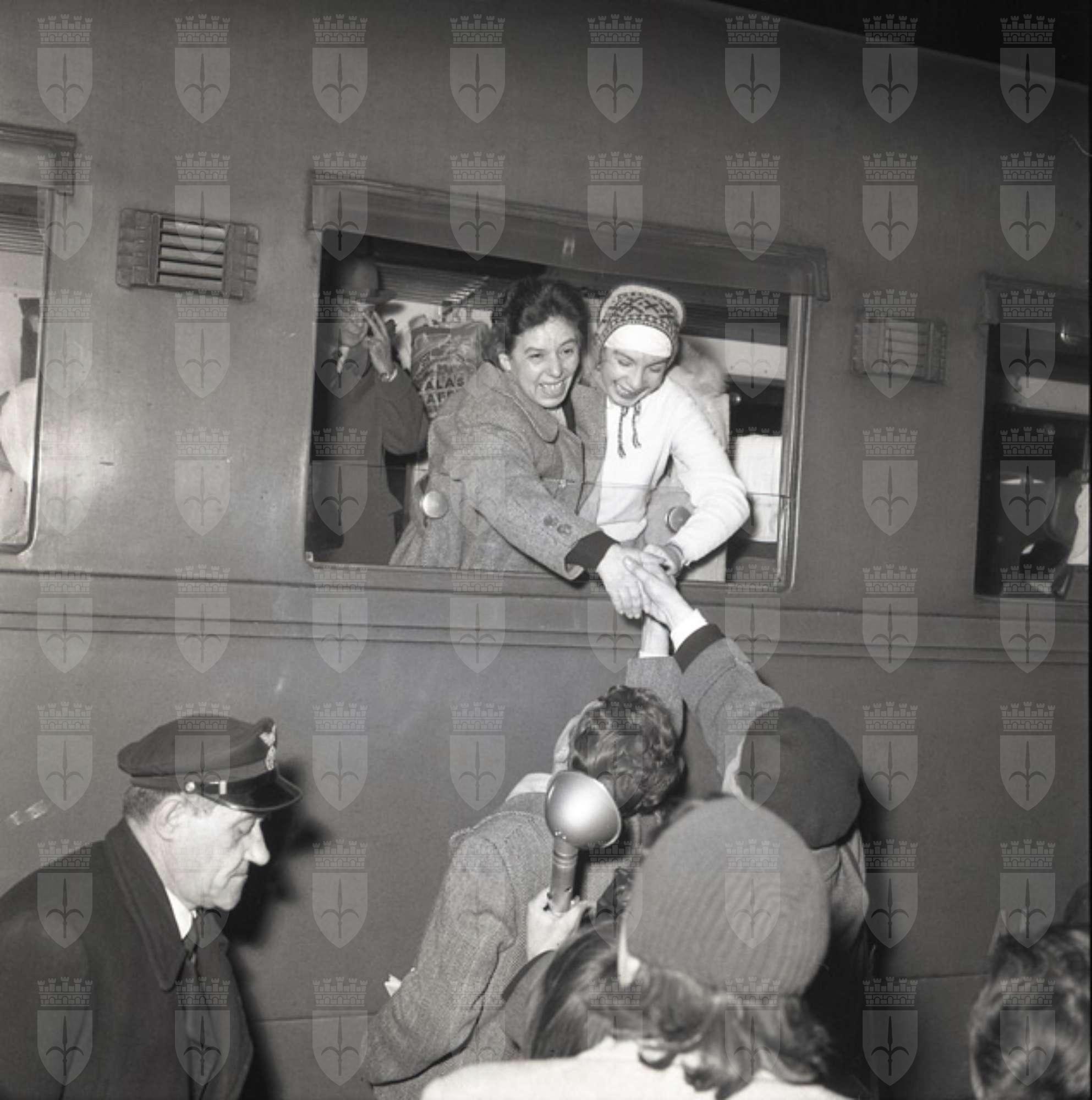 La giovane gradiscana Alessandra Fornasiero rientra da un viaggio a Stoccolma dove è stata operata dal professore Herbert Olivecrona. Con una sottoscrizione il Piccolo finanzia l'intervento che viene descritto nelle pagine del giornale. La documentazione fotografica utilizzata dal giornale è di Giornalfoto. Il servizio di Foto Omnia documenta anche il rientro a Gradisca.