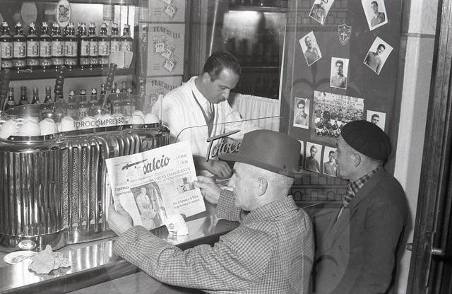 Sul bancone si nota la macchina del caffè mentre sulla mensola sono presenti le bottiglie di Bianco Sarti