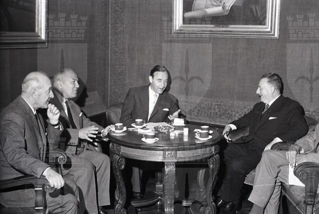 L'ambasciatore Klaiber arriva in città con la nave Saturnia. Accompagnato dal presidente della Camera di commercio Caidassi e dal presidente dell'Ente Fiera Suttora, Klaiber incontra alcuni dei maggiori esponenti della vita economica cittadina. Tratto da Il Piccolo sera del 22.09.1962