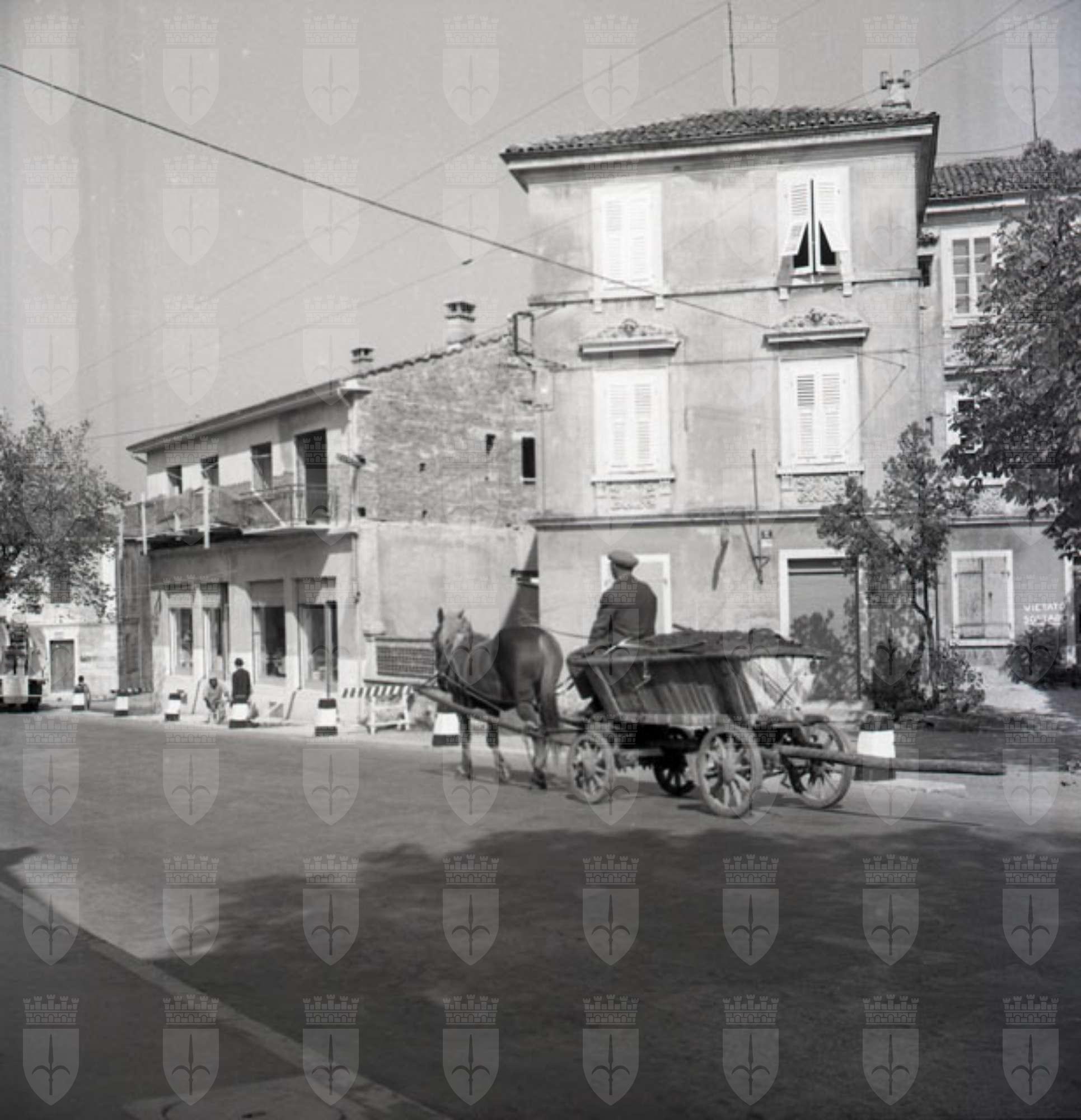 E' presente un carro condotto da cocchiere a cavallo